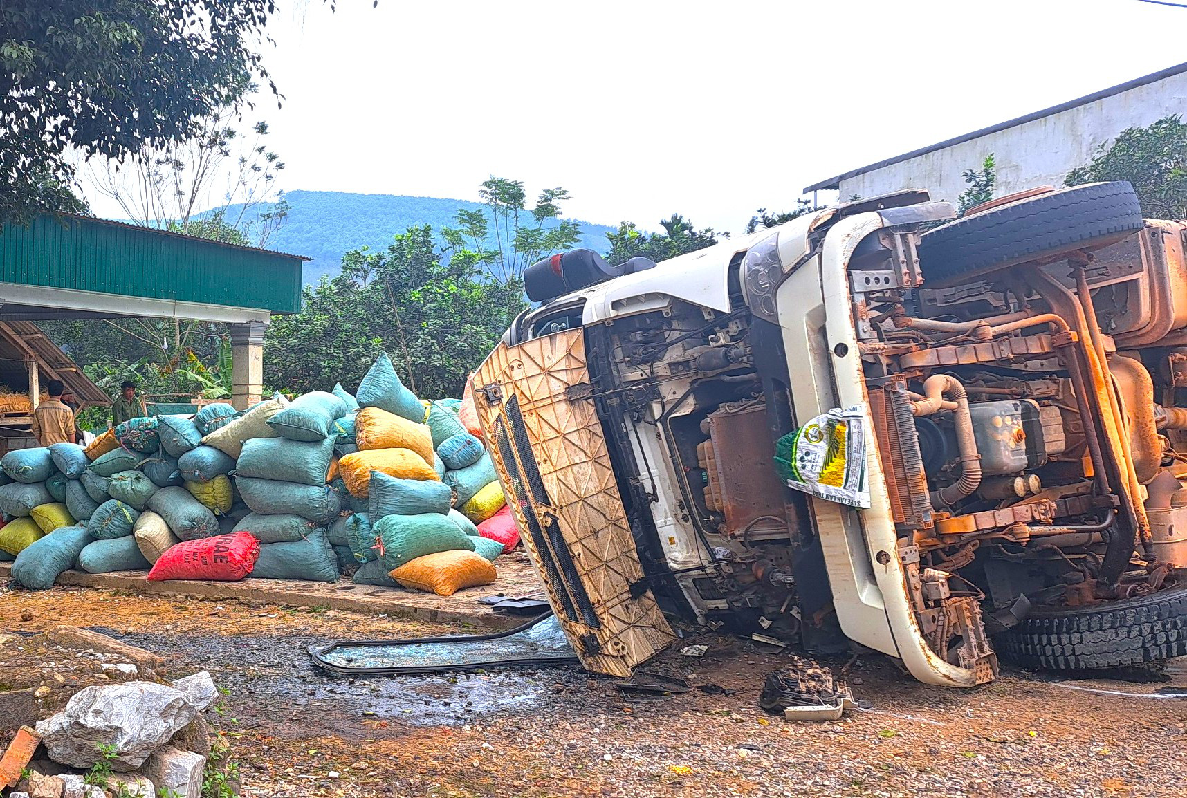 Khi bị lật, xe đầu kéo đã va chạm với cổng nhà dân gần đó khiến trụ cổng bị gãy, hàng rào và mái che phía trước hư hỏng. Xe đầu kéo cũng bị hư hỏng khá nặng sau sự cố, nhiều hàng hóa rơi khỏi thùng xe.
