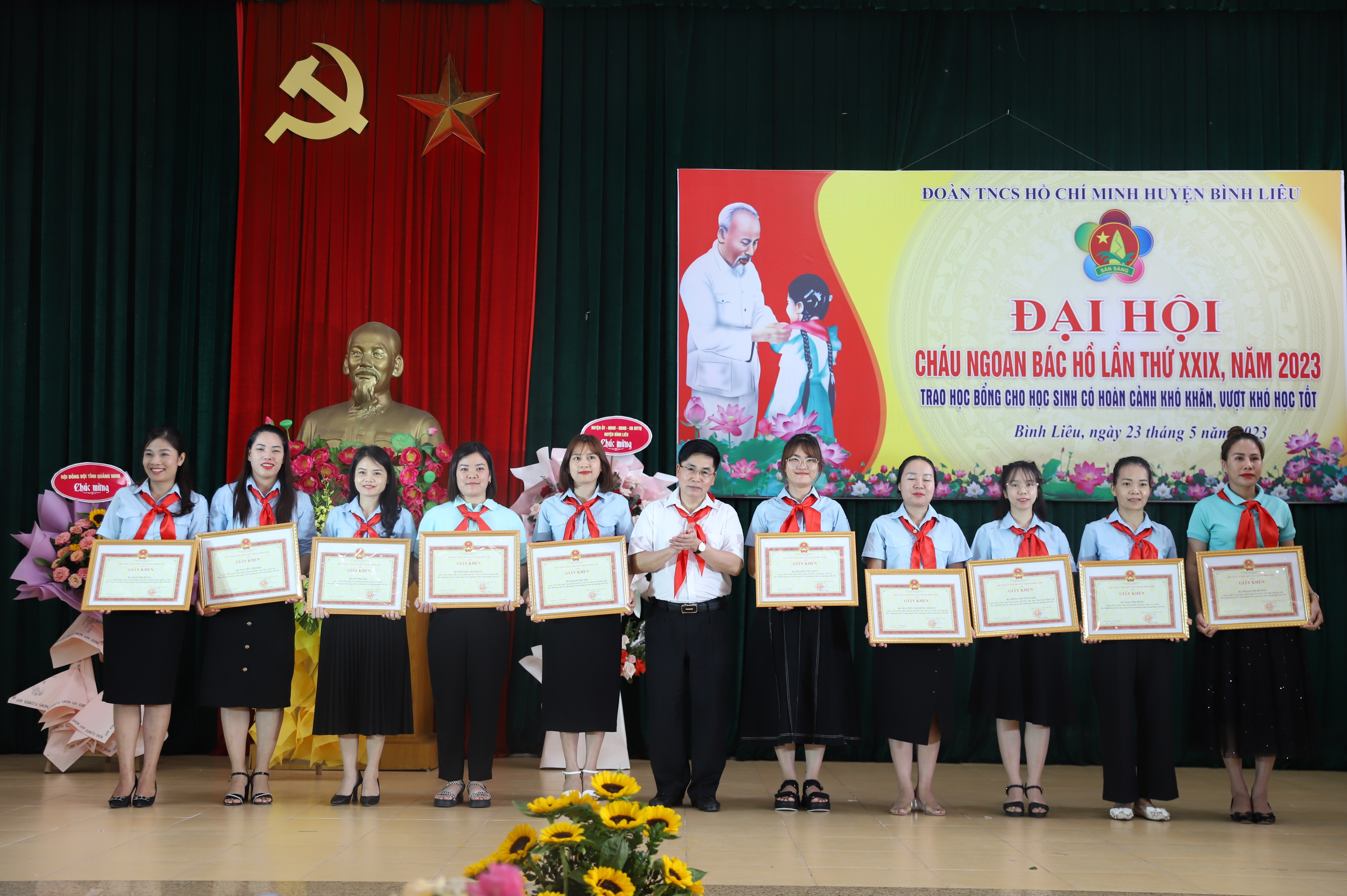 60 đội viên, thiếu niên tiêu biểu được tuyên dương tại Đại hội cháu ngoan Bác Hồ lần thứ XXIX năm 2023. Dự Đại hội có các đ/c: Lý Văn Bình – Phó Bí thư Thường trực HU, Chủ tịch HĐND huyện; Hoàng Ngọc Ngò – Phó Chủ tịch Thường trực UBND huyện cùng các đồng chí lãnh đạo các cơ quan ban ngành.