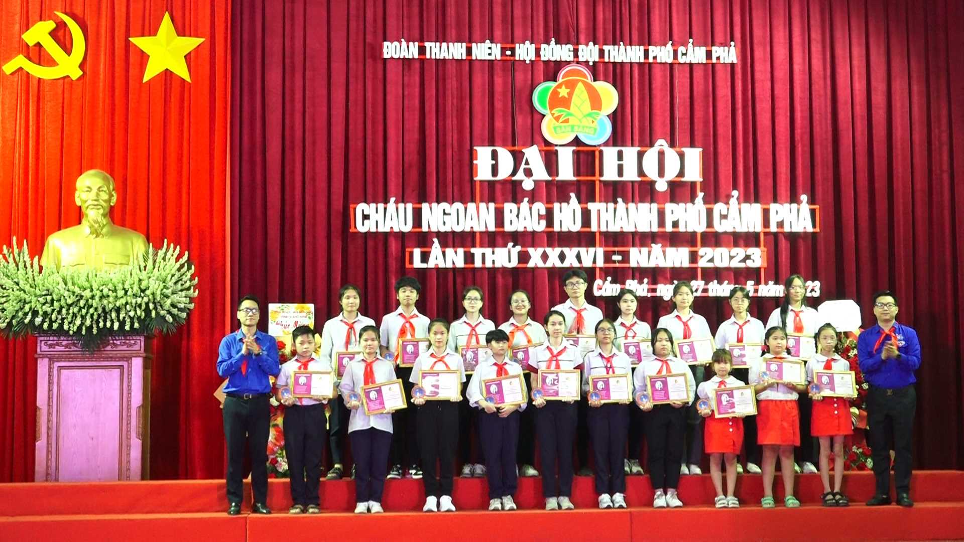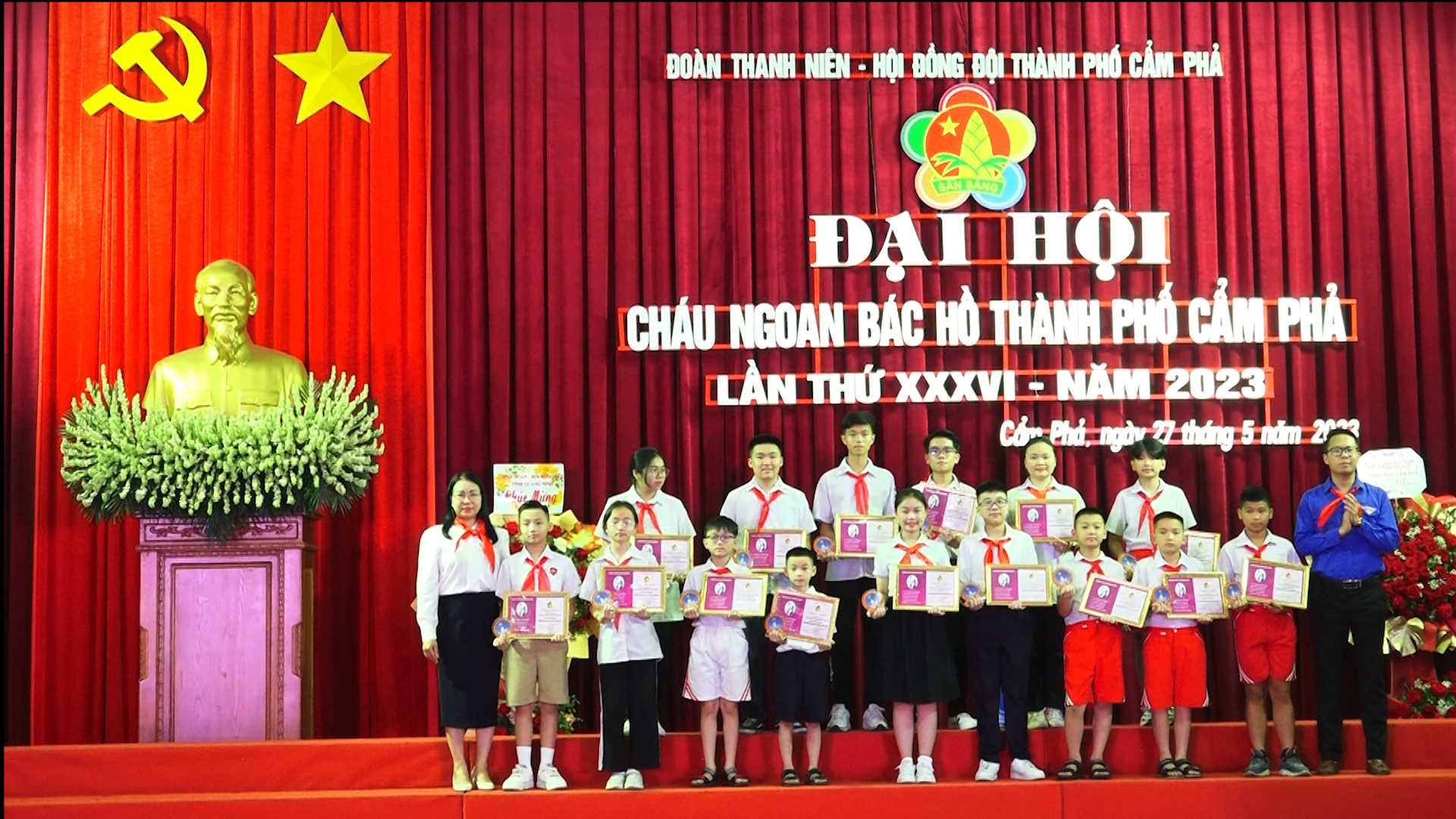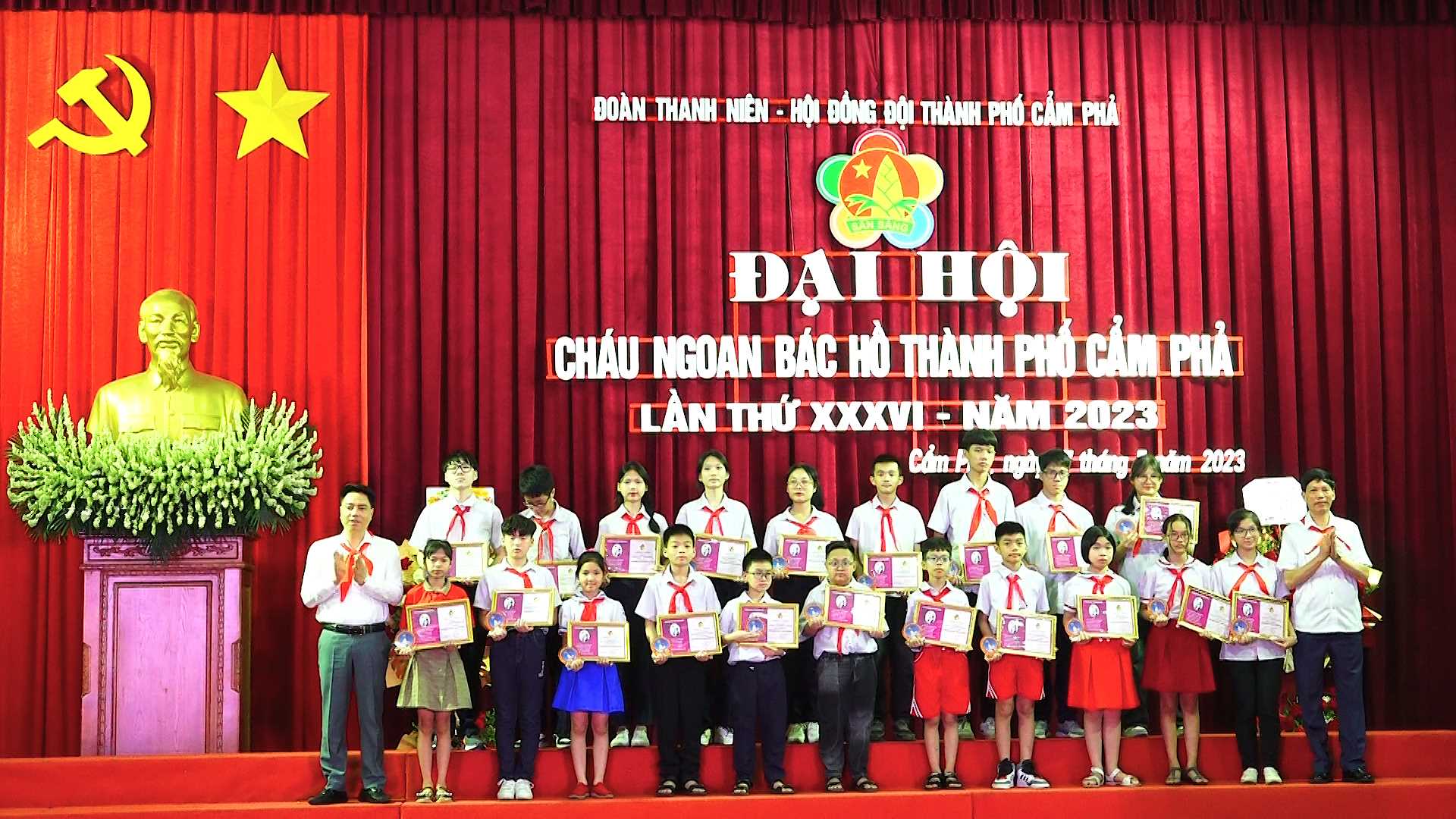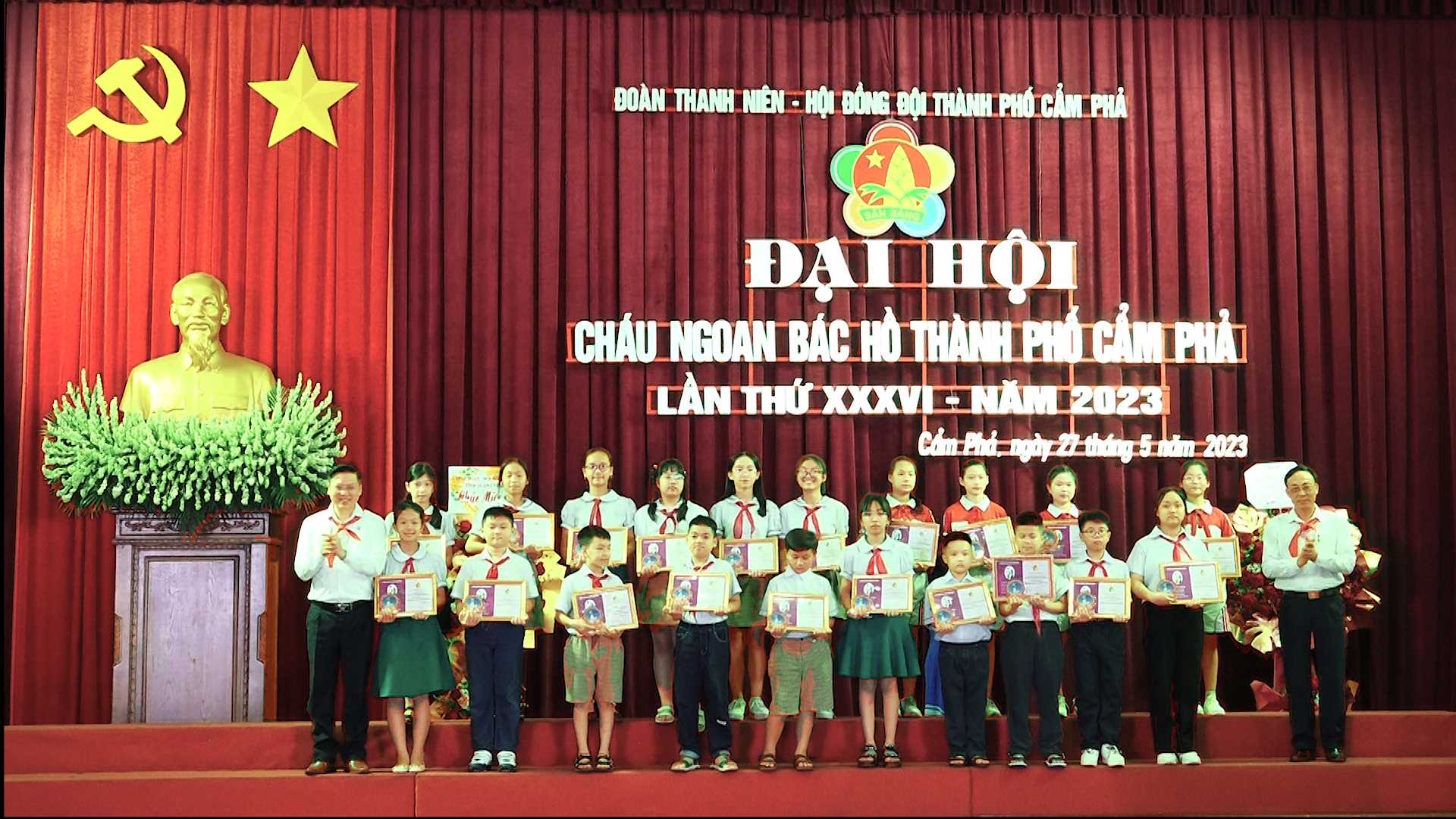 Sáng 27/05/2023, tại Nhà Văn hoá Công nhân Cẩm Phả đã diễn ra Đại hội cháu ngoan Bác Hồ thành phố Cẩm Phả lần thứ XXXVI năm 2023. Dự Đại hội có các đồng chí Nguyễn Thị Kim Phượng, Phó Bí thư Thường trực Thành uỷ; Trần Hoàng Hải, Uỷ viên BTV Thành ủy, Phó Chủ tịch Thường trực HĐND Thành phố; Đinh Ngọc Chiến, Uỷ Viên BTV Thành ủy, Phó Chủ tịch Thường trực UBND thành phố Cẩm Phả, Lãnh đạo Tỉnh đoàn Quảng Ninh và các đồng chí Ủy viên BTV Thành uỷ.