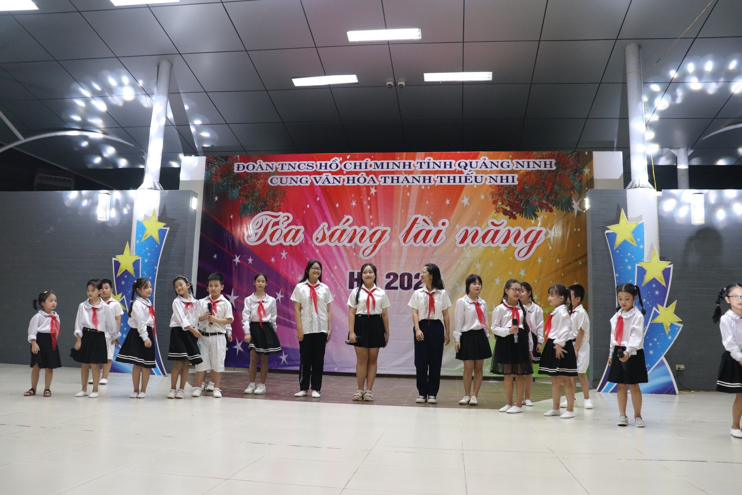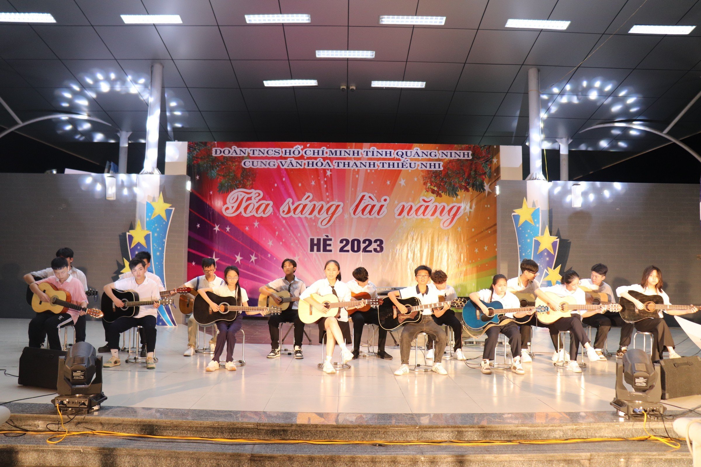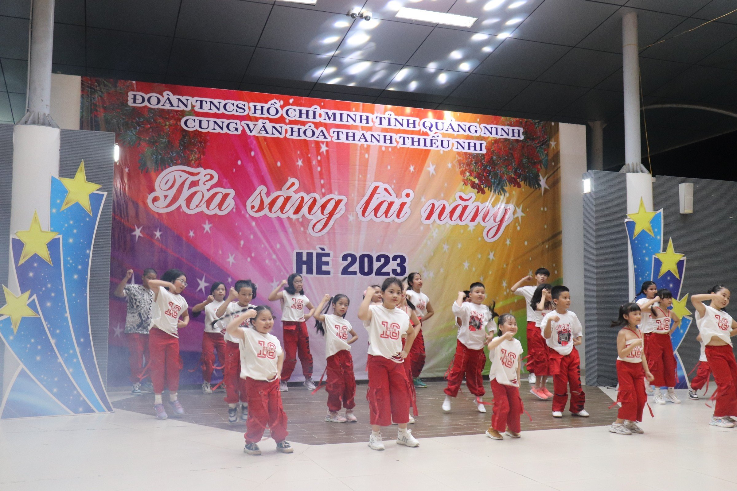 Tối ngày 05/7/2023 Cung văn hóa thanh thiếu nhi tỉnh Quảng Ninh tổ chức chương trình “Tỏa sáng tài năng” hè 2023 tại sân khấu Điểm hẹn Thanh niên. Đây là buổi báo cáo kết quả dạy và học năng khiếu tháng 6 hè 2023 trước khi chuyển sang chương trình học Tháng 7/2023. Trong ánh sáng và không gian rực rỡ, gần 1000 người đến cổ vũ đông đảo, đã trở thành ngày hội trình diễn tài năng của các bạn thanh thiếu nhi.