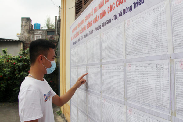 Cử tri Nguyễn Như Cường rà soát tên mình trong danh sách cử tri niêm yết tại khu vực bỏ phiếu.