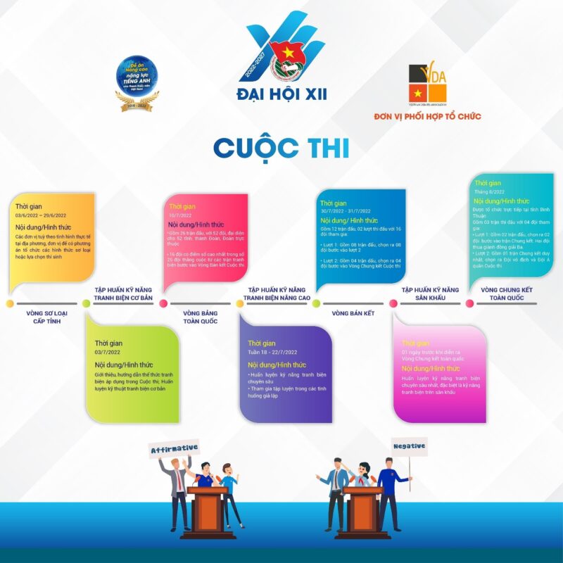 Cụ thể hóa chương trình hành động thực hiện Nghị quyết Đại hội đại biểu toàn quốc Đoàn TNCS Hồ Chí Minh lần thứ XI, nhiệm kỳ 2017 – 2022 và triển khai Đề án nâng cao năng lực tiếng Anh cho thanh thiếu niên Việt Nam giai đoạn 2018 – 2022; nhằm hướng dẫn, cung cấp các kiến thức, kỹ năng cơ bản và nâng cao về lĩnh vực tranh biện; tạo sân chơi lành mạnh, môi trường rèn luyện tiếng Anh cho đội ngũ cán bộ làm công tác Đoàn, Hội chuyên trách hoặc kiêm nhiệm trên phạm vi toàn quốc, Trung ương Đoàn tổ chức Cuộc thi Tranh biện tiếng Anh cho cán bộ Đoàn, Hội, Đội toàn quốc năm 2022.