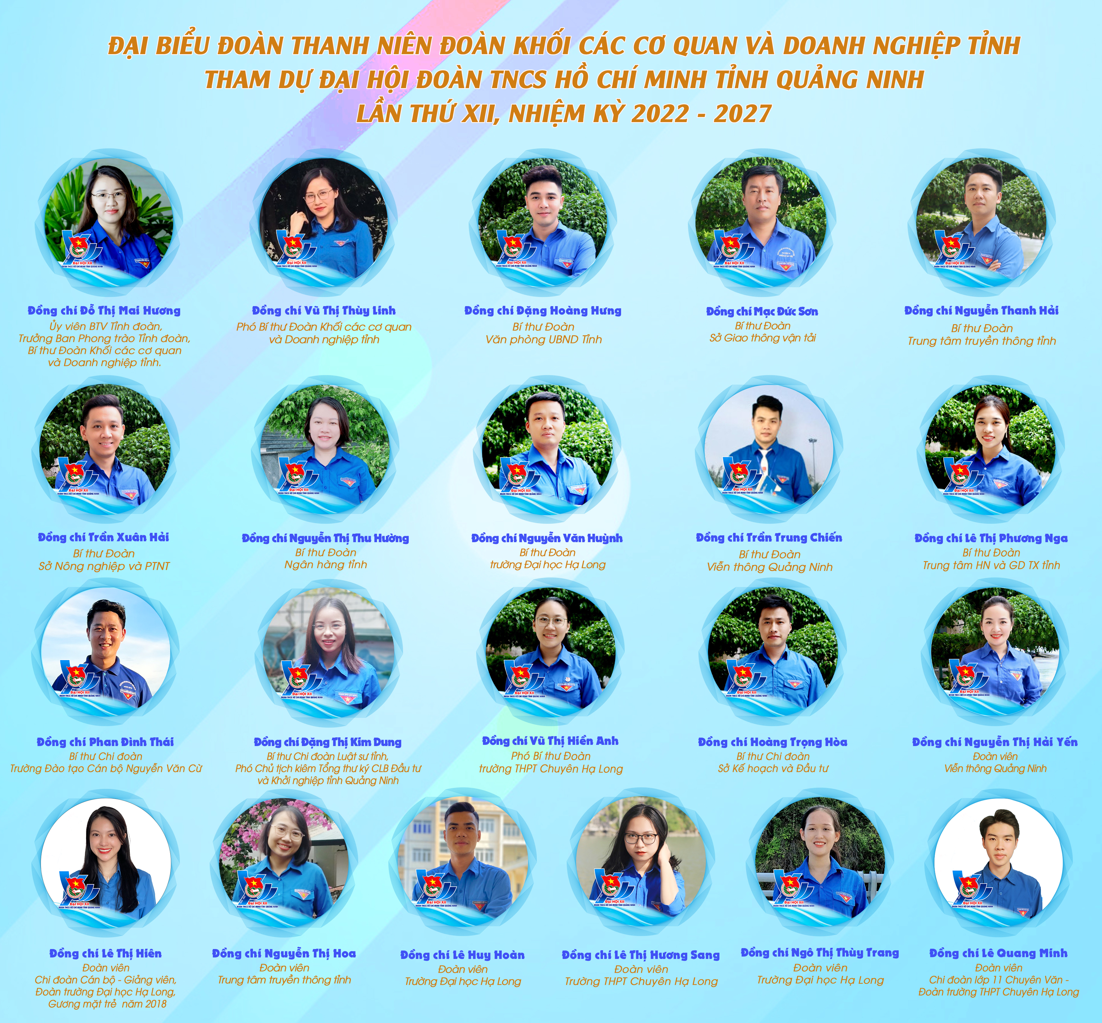 Trân trọng chào mừng 21 đồng chí đại biểu thanh niên Đoàn Khối các cơ quan và doanh nghiệp tỉnh Quảng Ninh về tham dự Đại hội: