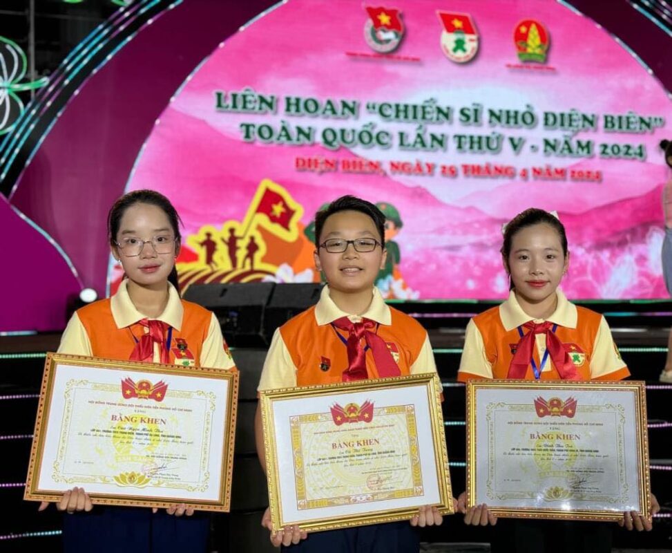 Quảng Ninh có em Cù Thế Tùng – Lớp 6A11, Trường THCS Trọng Điểm, thành phố Hạ Long; em Đinh Thu Trà – Lớp 8A5, Trường THCS Trần Quốc Toản, thành phố Uông Bí và em Cao Ngọc Minh Thư – Lớp 6A1, Trường THCS Trọng Điểm, thành phố Hạ Long. Đại biểu phụ trách thiếu nhi có đồng chí Đinh Thị Hợi – Huấn luyện viên cấp 2 Trung ương – Giáo viên Tổng phụ trách Đội TNTP Hồ Chí Minh trường Tiểu học Đông Ngũ II, huyện Tiên Yên. Các em vinh dự nằm trong số 200 đại biểu thiếu nhi được tuyên dương “Chiến sĩ nhỏ Điện Biên” toàn quốc