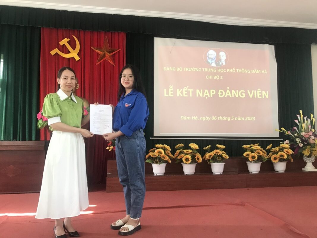 Trong năm học 2022 – 2023, Chi bộ 2, Chi bộ 4 thuộc Đảng bộ Trường THPT Đầm Hà đã long trọng tổ chức Lễ kết nạp Đảng viên cho quần chúng các học sinh ưu tú khóa 2020 – 2023, là những học sinh ưu tú có thành tích xuất sắc trong học tập và rèn luyện của Trường THPT Đầm Hà.