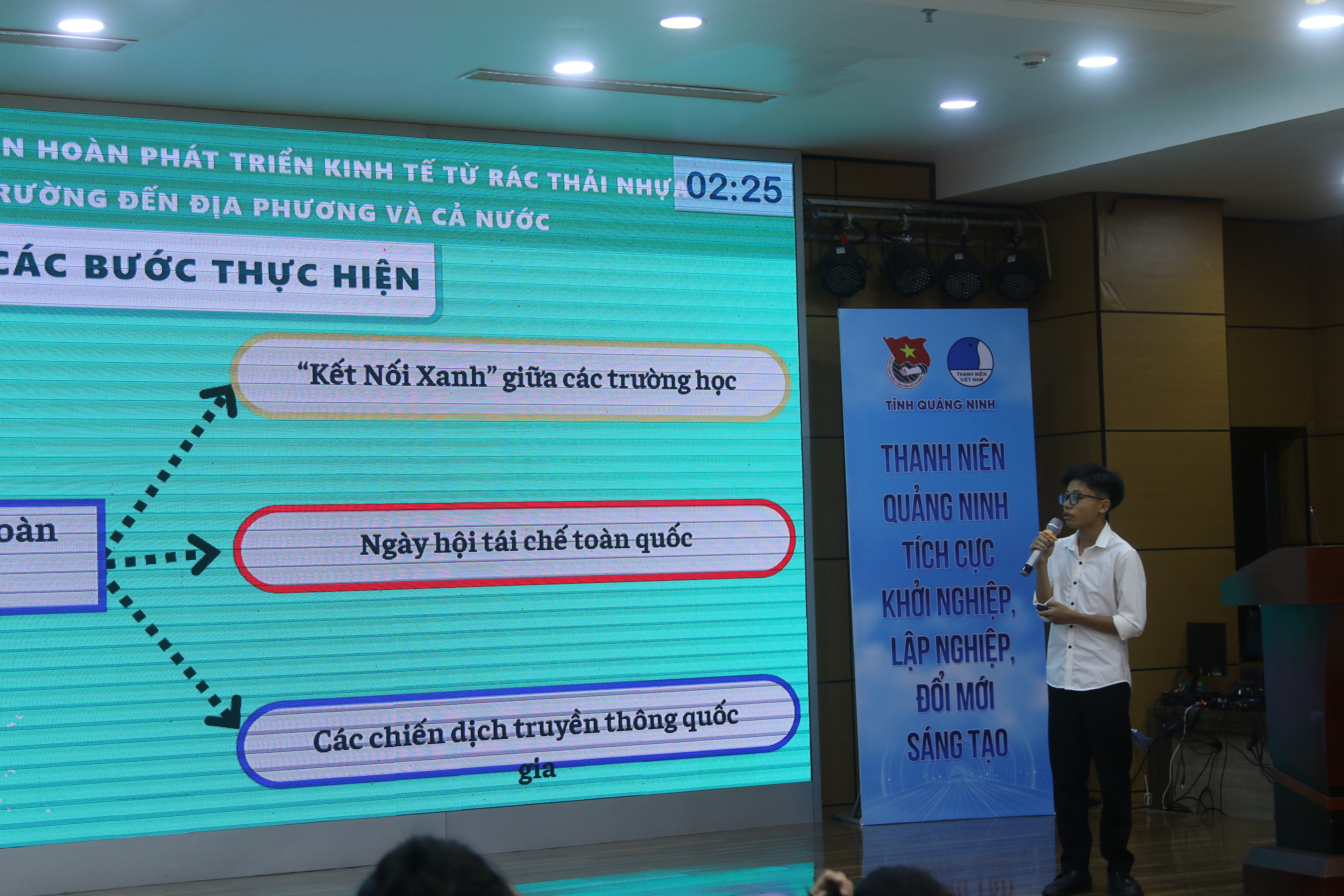 Những năm qua, Tỉnh Đoàn Quảng Ninh thường xuyên quan tâm, chú trọng công tác hỗ trợ các ý tưởng dự án khởi nghiệp, lập nghiệp của thanh niên trên các lĩnh vực, nhất là lĩnh vực bảo vệ môi trường, ứng phó với biến đổi khí hậu. Đồng thời tăng cường ký kết các chương trình phối hợp để tăng cường nguồn lực hỗ trợ cho thanh niên, nổi bật nhất là các chương trình phối hợp hỗ trợ các ý tưởng, mô hình khởi nghiệp thanh niên của Ban Thường vụ Tỉnh đoàn ký kết với Sở Tài nguyên và Môi trường tỉnh, Sở Khoa học và Công nghệ tỉnh, CLB Đầu tư & Khởi nghiệp tỉnh tổ chức các hoạt động tuyên truyền, các buổi ra quân bảo vệ môi trường; các cuộc thi, tổ chức các lớp đào tạo, bồi dưỡng, các khóa học ngắn hạn nhằm nâng cao kỹ năng quản lý, nghiên cứu, phát triển sản phẩm cho các tác giả, nhóm tác giả; hỗ trợ phát triển, hoàn thiện từ quy trình sản xuất ra một thiết bị cho đến thử nghiệm thực tế trên biển đảm bảo vận hành hiệu quả,…