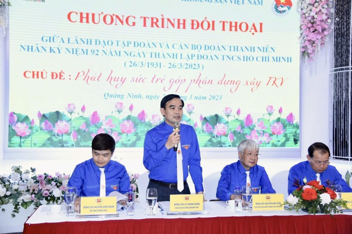 Ngày 24/3, tại TP Móng Cái, Tập đoàn Công nghiệp Than – Khoáng sản Việt Nam tổ chức chương trình gặp mặt đối thoại giữa lãnh đạo Tập đoàn và cán bộ Đoàn Thanh niên trong toàn Tập đoàn nhân dịp kỷ niệm 92 năm Ngày thành lập Đoàn TNCS Hồ Chí Minh (26/3/1931- 26/3/2023).
