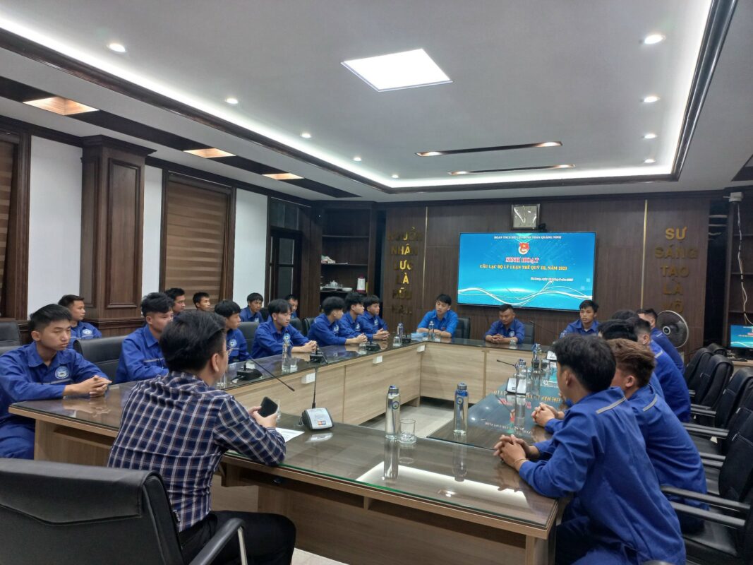 Chiều ngày 25/05/2023, Câu lạc bộ Lý luận trẻ Đoàn Than Quảng Ninh tổ chức sinh hoạt Câu lạc bộ Quý II/2020 với chủ đề: “Khát vọng tuổi trẻ xây dựng tỉnh Quàng Ninh kiểu mẫu, giàu đẹp, văn minh, hiện đại”