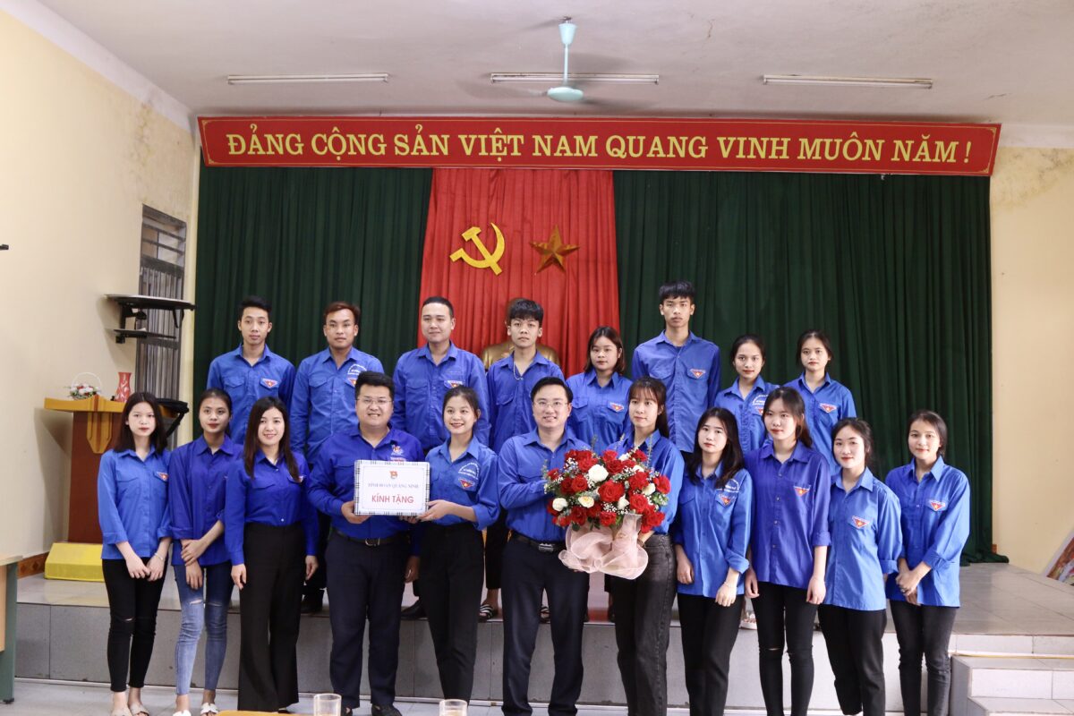 Đồng chí Bí thư tặng hoa và quà chúc mừng chi Đoàn thôn nhân dịp 26/3