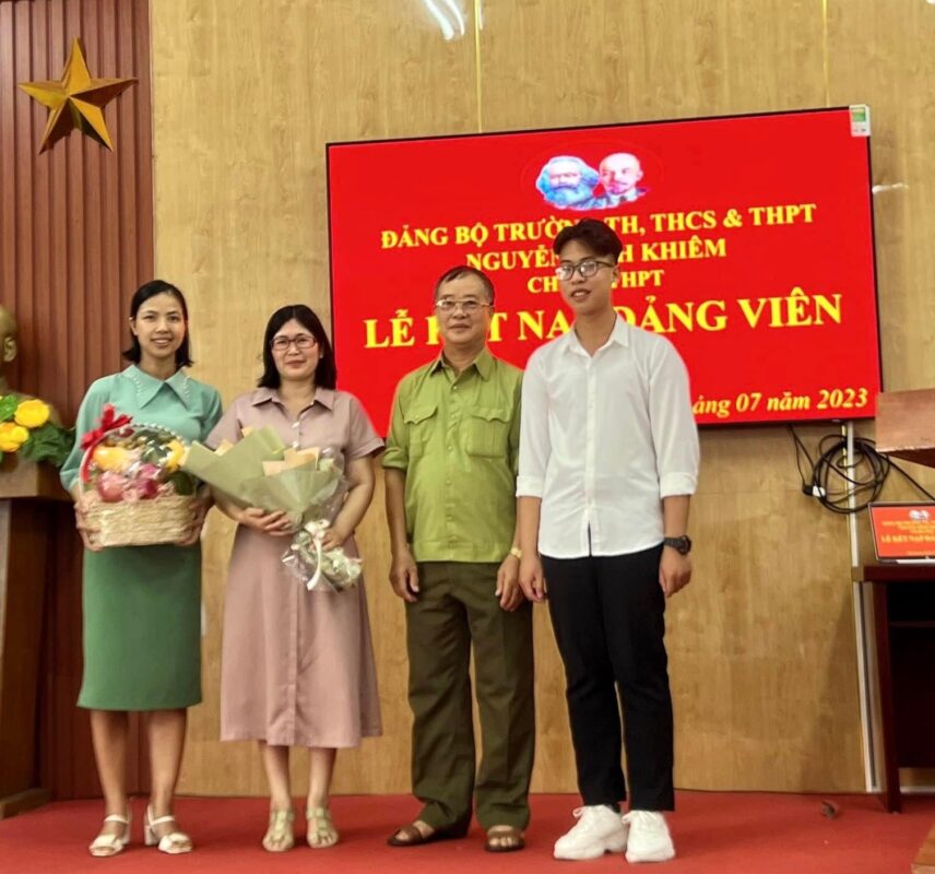 Chiều ngày 21/7/2023, Chi bộ cấp THPT thuộc Đảng bộ trường TH, THCS, THPT Nguyễn Bỉnh Khiêm, TP. Hạ Long long trọng tổ chức lễ kết nạp Đảng viên mới đối với quần chúng ưu tú Vũ Thế Anh. Đây là sự kiện có ý nghĩa quan trọng trong công tác xây dựng Đảng, góp phần phát triển, nâng cao chất lượng của Chi bộ cấp THPT nói riêng và của Đảng bộ nhà trường nói chung.
