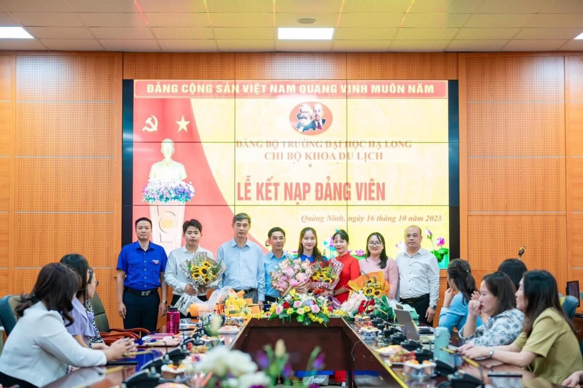 Em Đặng Tâm Nhi – chủ nhiệm CLB Sinh viên 5 tốt trường ĐH Hạ Long, em Vũ Tú Anh – Phó chủ nhiệm CLB Sinh viên 5 tốt trường ĐH Hạ Long tại lễ kết nạp đảng viên ngày 16/10/2023.