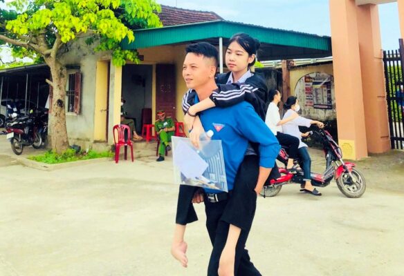 Hình ảnh Bí thư Đoàn xã Võ Liệt (huyện Thanh Chương) cõng thí sinh khuyết [...]