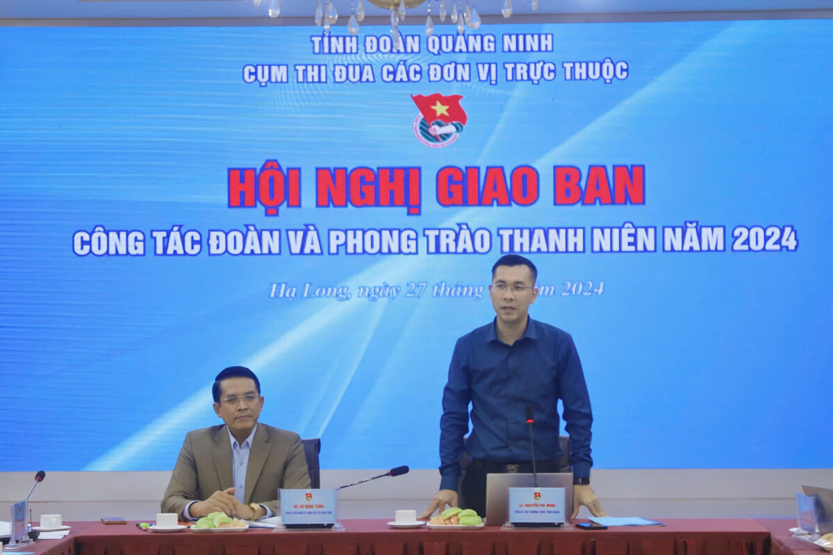 Ngày 27/11/2024, tại Trụ sở liên cơ quan số 4, Ban Thường vụ Đoàn Khối các cơ quan tỉnh đăng cai tổ chức Hội nghị giao ban công tác Đoàn và phong trào thanh niên Cụm thi đua các đơn vị trực thuộc Tỉnh đoàn năm 2024. Dự và chỉ đạo Hội nghị có đồng chí Nguyễn Thế Minh – Phó Bí thư Phụ trách Tỉnh đoàn; đồng chí Vũ Ngọc Tuấn – Phó Bí thư Đảng ủy Khối các cơ quan tỉnh.