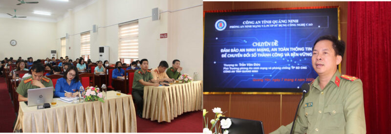 Ngày 07/4/2023, tại thị xã Quảng Yên, Đoàn Thanh niên Công an tỉnh Quảng Ninh phối hợp Thị đoàn Quảng Yên tham mưu, tổ chức Hội nghị chuyên đề đảm bảo an ninh mạng, an toàn thông tin để chuyển đổi số thành công và bền vững với sự tham gia của trên 100 cán bộ, đoàn viên, thanh niên và nhân dân.