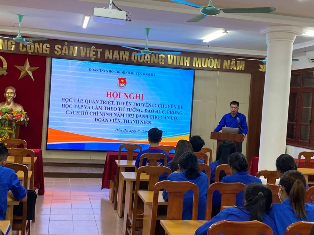 Thực hiện chương trình công tác Đoàn và phong trào TTN huyện năm 2023, Sáng ngày 25/8/2023, tại Hội trường Trung tâm Chính trị huyện, Ban Thường vụ Huyện đoàn Đầm Hà tổ chức Hội nghị học tập, quán triệt, tuyên truyền 02 chuyên đề “Học tập và làm theo tư tưởng, đạo đức, phong cách Hồ Chí Minh” năm 2023 trong các bộ, đoàn viên, thanh niên cho 40 đồng chí là ủy viên Ban Chấp hành Huyện đoàn, các đồng chí là Bí thư và Phó Bí thư các Đoàn xã, thị trấn và Đoàn trực thuộc và đoàn viên, thanh niên trên địa bàn huyện.