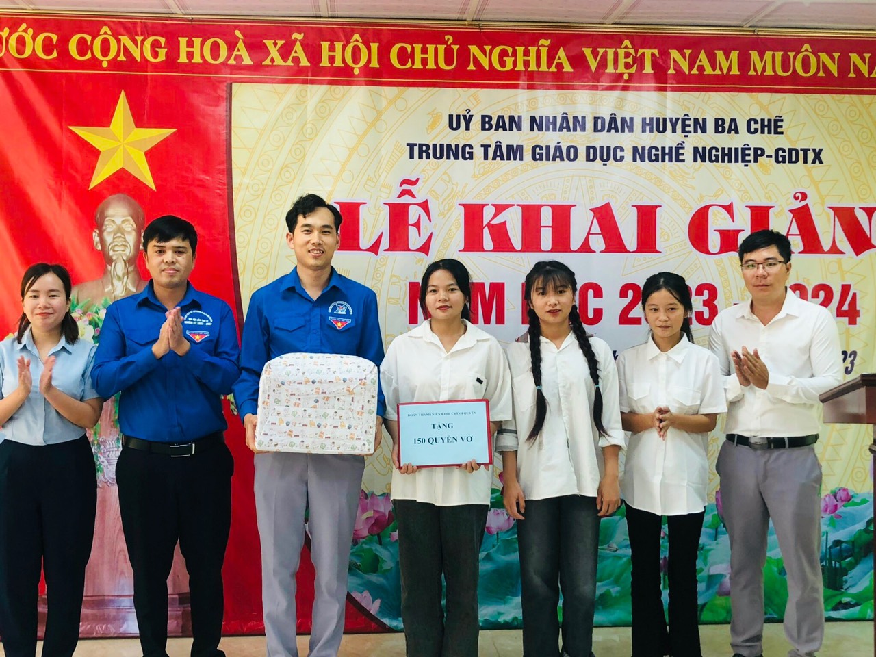Nhân dịp này, Đoàn Khối Chính quyền và Chi đoàn Công an huyện Ba Chẽ đã trao tặng 300 cuốn vở viết cho học sinh tại Trung Tâm Giáo dục Nghề nghiệp – Giáo dục thường xuyên với mong muốn hỗ trợ các em học sinh khó khăn bước vào năm học mới có đầy đủ tập vở. Đồng thời, khuyến khích động viên, ủng hộ phong trào học tập của học sinh vùng đồng bào DTTS, vùng sâu, vùng xa.