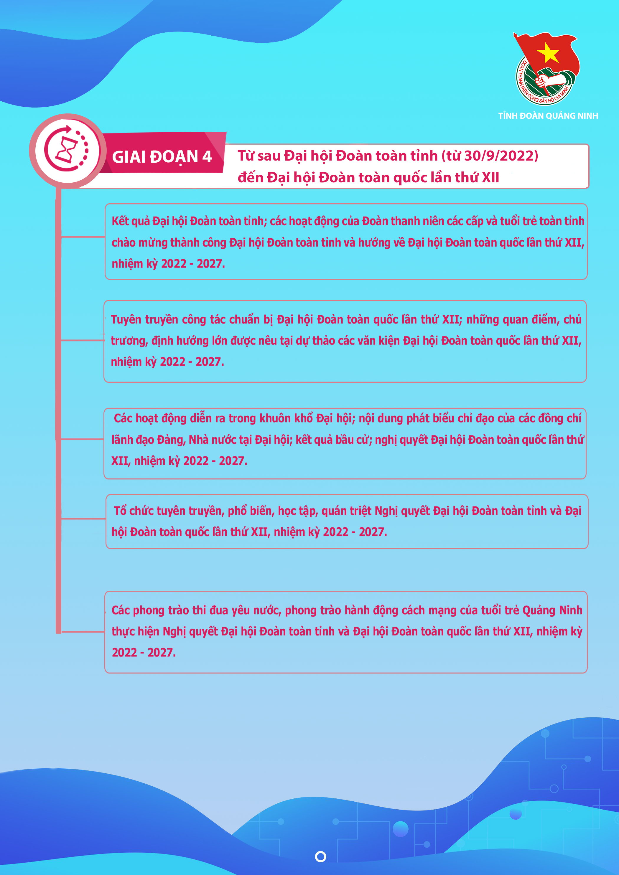 Infographic: Nội dung các giai đoạn tuyên truyền Đai hội Đoàn các cấp, Đại hội Đoàn toàn tỉnh và Đại hội Đoàn toàn quốc lần thứ XII