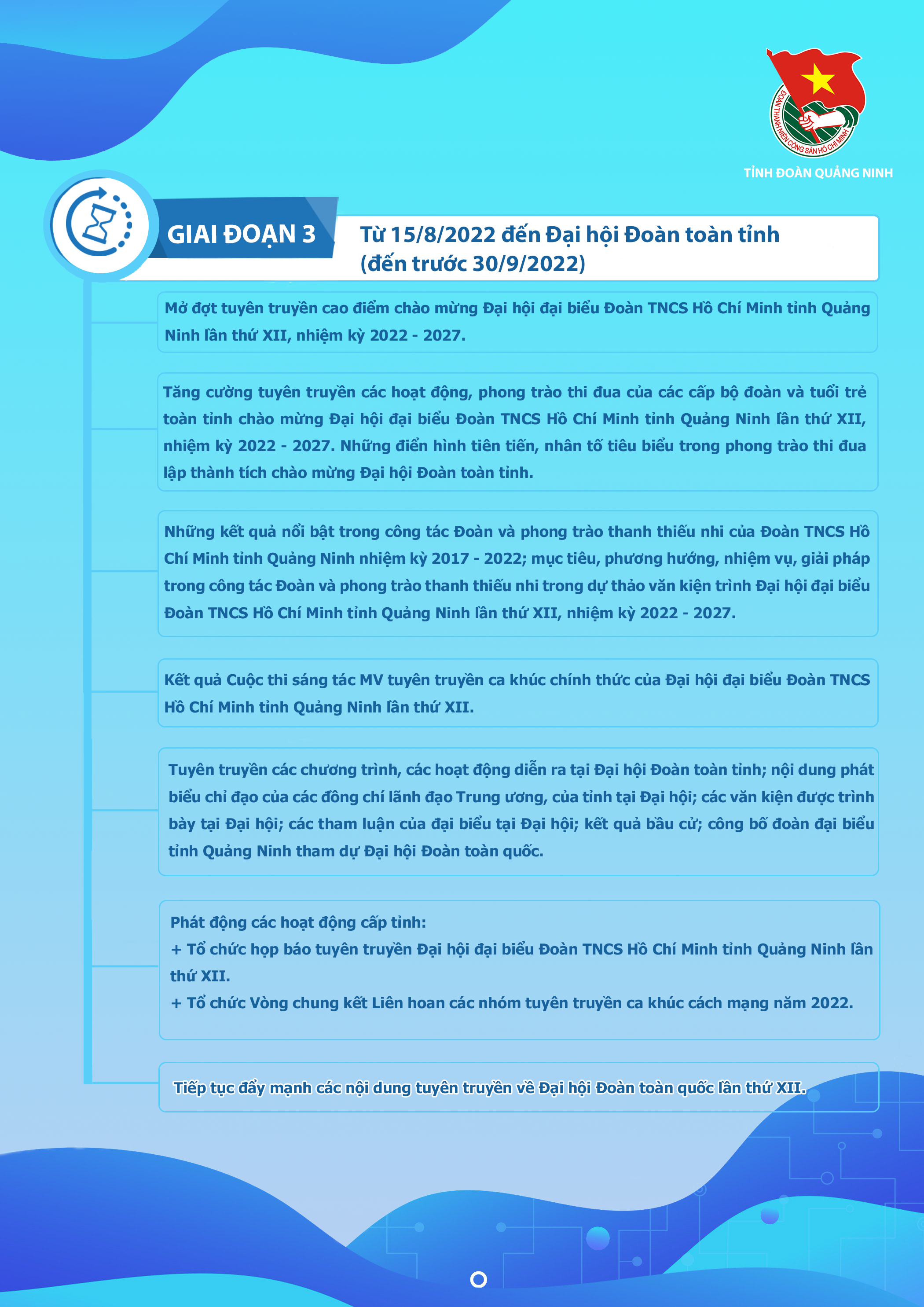 Infographic: Nội dung các giai đoạn tuyên truyền Đai hội Đoàn các cấp, Đại hội Đoàn toàn tỉnh và Đại hội Đoàn toàn quốc lần thứ XII