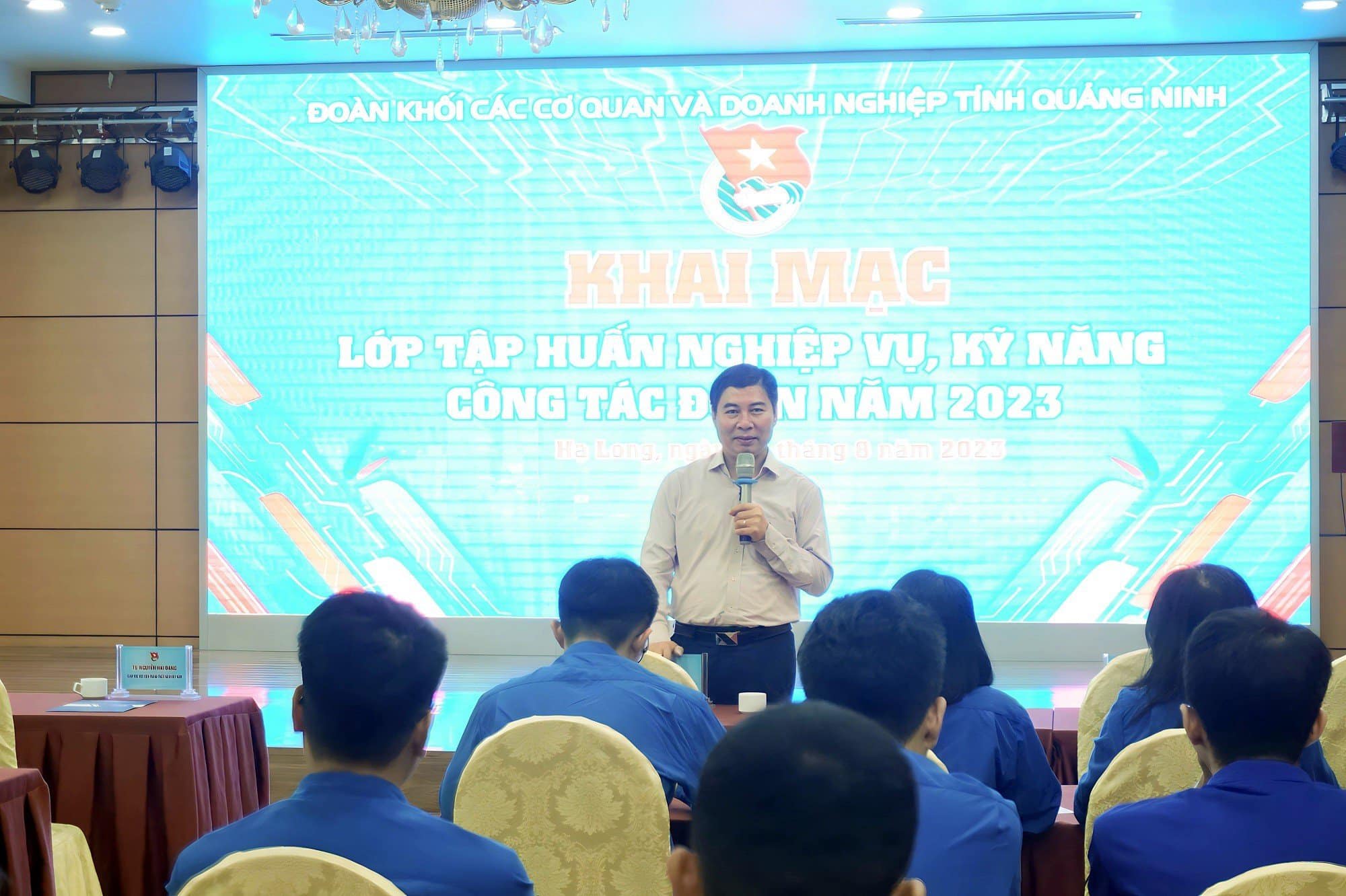 Phát biểu tại lễ khai giảng đồng chí Hoàng Văn Hải – Ủy viên BCH Trung ương Đoàn, Bí thư Tỉnh đoàn Quảng Ninh nhấn mạnh công tác bồi dưỡng chức danh Bí thư Đoàn cơ sở trong bối cảnh hiện nay rất quan trọng, nhằm đào tạo đội ngũ cán bộ Đoàn có kiến thức về lý luận và thực tiễn, đáp ứng yêu cầu trong tình hình mới, đặc biệt là sau khi Đại hội cấp cơ sở vừa diễn ra. Thông qua những kiến thức được học, học viên sẽ rút ra những bài học cho bản thân, mang những kiến thức đã học phục vụ thiết thực trong công tác Đoàn và phong trào thanh thiếu nhi của từng đơn vị. Với tầm quan trọng đó, đòi hỏi mỗi cán bộ Đoàn cấp cơ sở phải phấn đấu không ngừng, luôn cập nhật cái mới, xu thế phát triển, hấp dẫn và thu hút thanh thiếu nhi, để hoạt động Đoàn trở thành môi trường lành mạnh, có tác động giáo dục sâu rộng đến mọi đối tượng thanh thiếu nhi tại cơ sở. Đồng thời, đồng chí cũng đề nghị các đồng chí Ban Tổ chức lớp học nắm rõ số lượng học viên, sỹ số, giờ giấc tham gia của học viên; các đồng chí giảng viên với trách nhiệm, tâm huyết của mình truyền đạt những kiến thức và những kinh nghiệm quý báu của mình tới lớp tập huấn, dành thời gian hợp lý trao đổi cùng các học viên, giúp các học viên nâng cao kiến thức và kỹ năng hoạt động công tác Đoàn tại cơ sở. Các đồng chí học viên đảm bảo giờ giấc, chấp hành các quy định của lớp tập huấn; nghiêm túc trao đổi kinh nghiệm, tích cực tham gia các hoạt động thực hành, khảo sát thực tế do Ban tổ chức lớp quy định; vận dụng sáng tạo vào thực tiễn công tác nhằm nâng cao năng lực tổ chức họat động thực tiễn tại cơ quan, đơn vị, cơ sở.