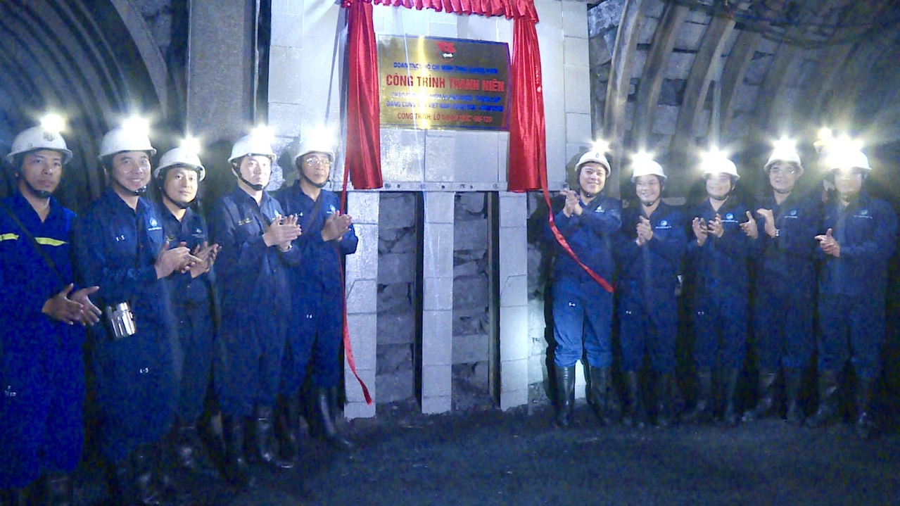 | Đoàn Thanh niên Công ty Than Nam Mẫu gắn biển “Công trình thanh niên” Lò ngầm mức -50/-120 chào mừng kỷ niệm 90 năm Ngày thành lập Đảng Cộng sản Việt Nam. Ảnh: Phạm Học |