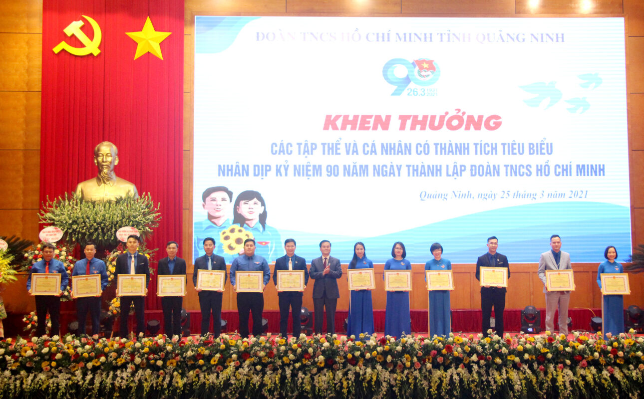 Nhân dịp này, Ban Thường vụ Trung ương Đoàn TNCS Hồ Chí Minh đã tặng kỷ niệm chương Vì thế hệ trẻ cho 8 cá nhân tiêu biểu; Ban Chấp hành Trung ương Đoàn tặng Bằng khen cho 27 tập thể và 45 cá nhân có thành tích tiêu biểu; UBND tỉnh tặng Bằng khen cho 16 tập thể và 14 cá nhân có thành tích xuất sắc nhân dịp kỷ niệm 90 năm ngày thành lập Đoàn TNCS Hồ Chí Minh