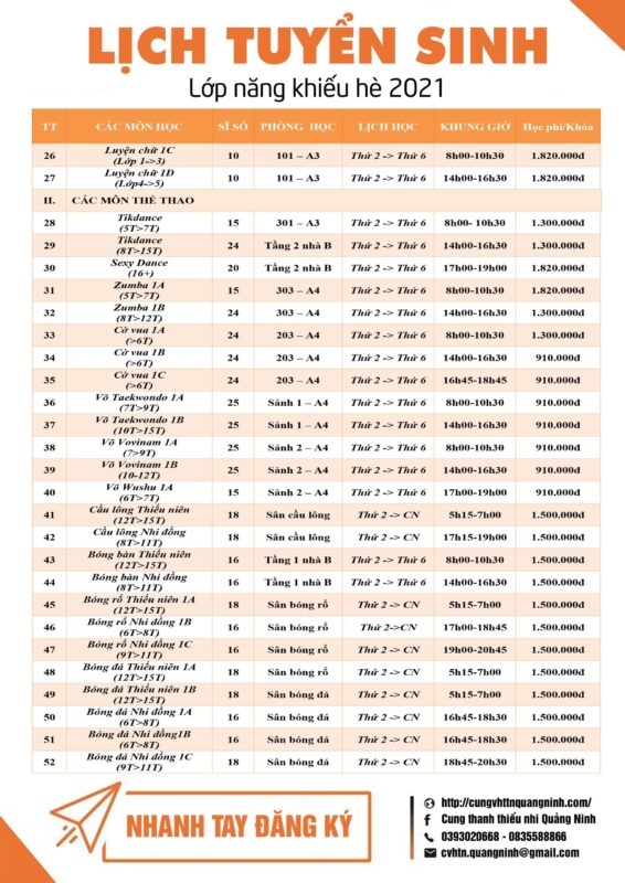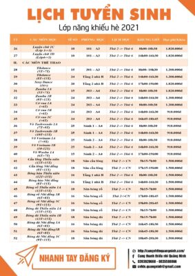 - Lịch tuyển sinh các lớp năng khiếu hè 2021: Các môn kỹ năng