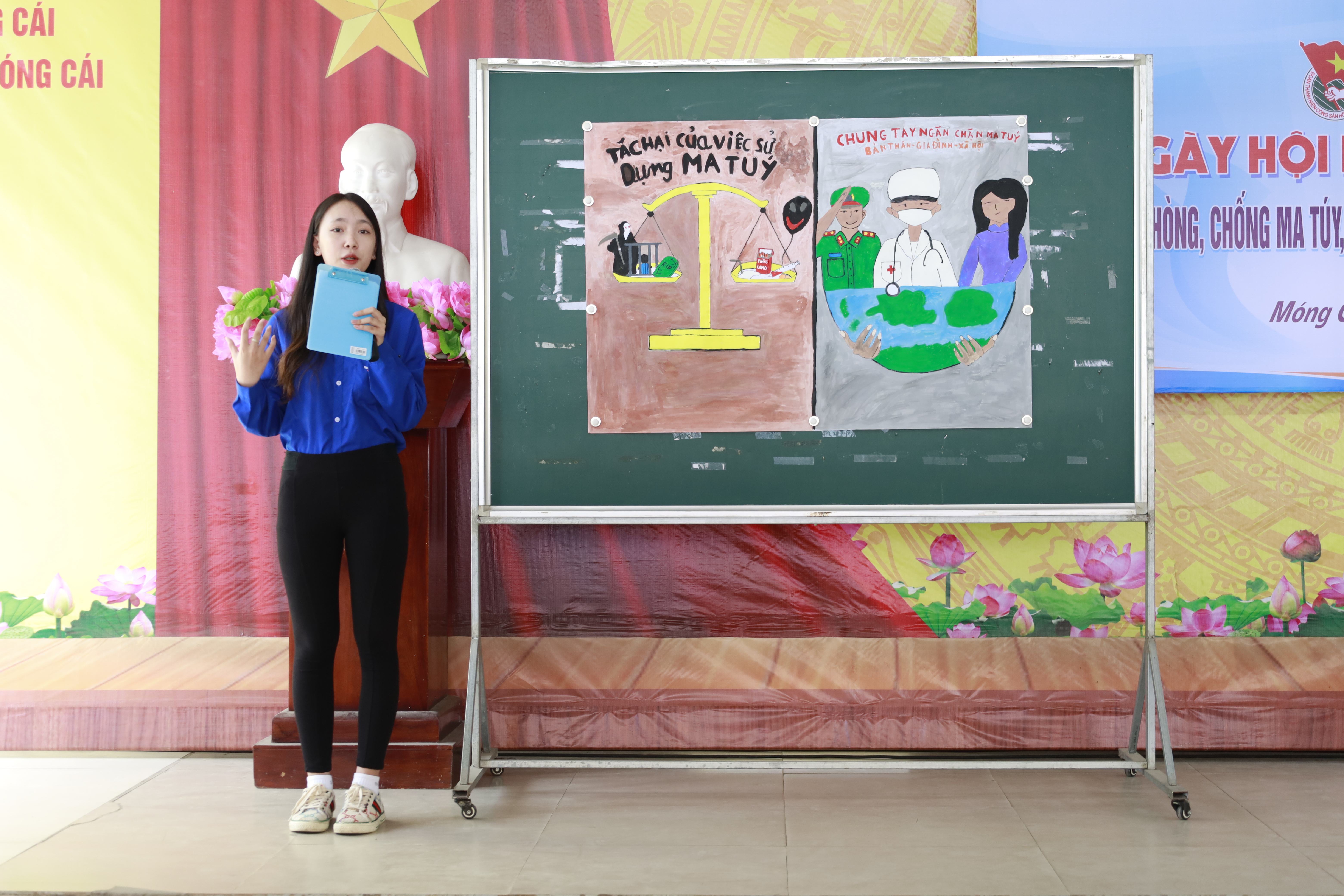 Tại ngày hội, các em học sinh cùng với cán bộ giáo viên, nhân viên Trung tâm GDNN – GDTX TP Móng Cái đã được nghe đồng chí Thượng uý Ngô Thế Anh – Phó Trưởng phòng CSĐT công an tỉnh Quảng Ninh tuyên truyền nội dung về các loại ma túy và cách nhận biết về các dạng ma tuý, tác hại, cách phòng tránh cũng như tìm hiểu về cơ chế gây nghiện đưa ra các cảnh báo đối với việc không được sử dụng ma tuý và thử ma túy dù chỉ một lần; nội dung tuyên truyền chuyên đề nhấn mạnh tác hại của các loại ma tuý giới trẻ hiện nay đang sử dụng như sisha, thuốc lá điện tử, tem và bóng cười, thuốc lắc, ma tuý tổng hợp, ma tuý đá…nhằm giúp các em học sinh có những kiến thức cơ bản, nhận diện được các loại ma túy qua đó các em sẽ nâng cao cảnh giác và có những kỹ năng cơ bản trong việc nói không với với ma túy.