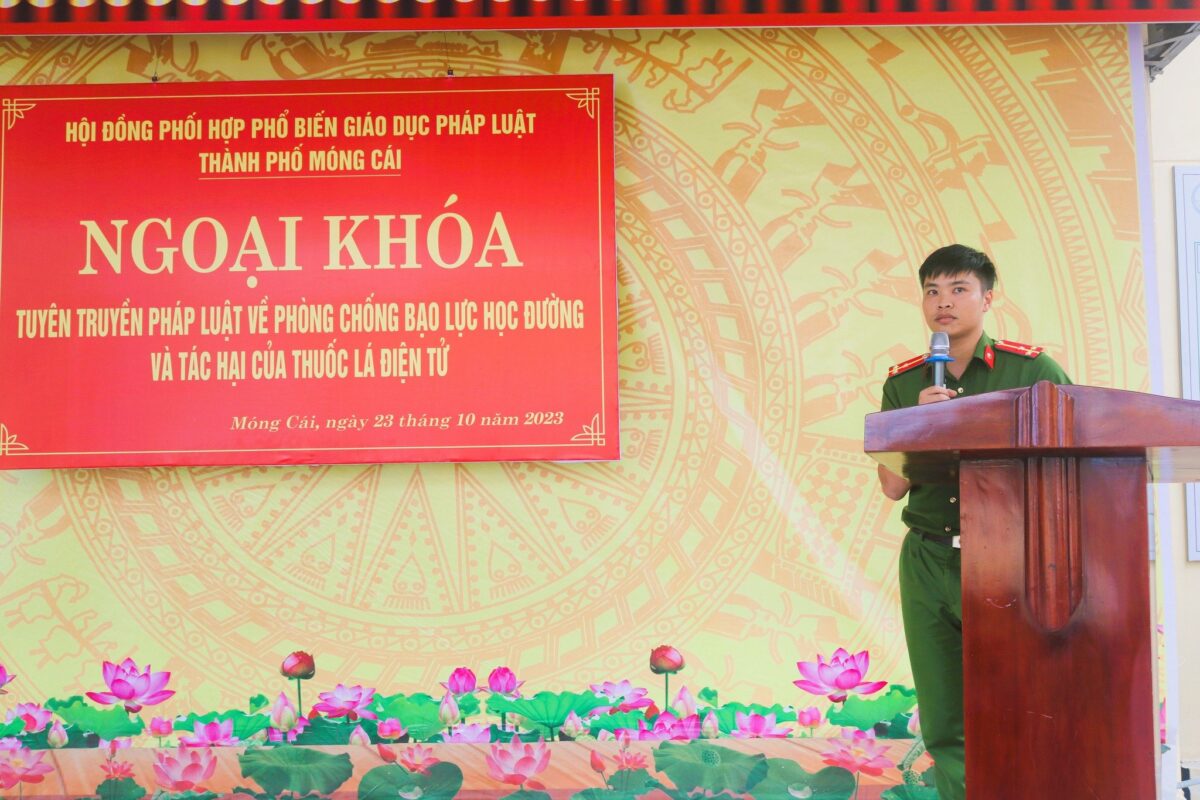 Thành Đoàn Móng Cái – Hội đồng phổ biến giáo dục thành phố Móng Cái tổ chức Ngoại khóa phổ biến giáo dục pháp luật trong trường học năm 2023 Hưởng ứng ngày Pháp luật Việt Nam 9/11 tại Trung tâm Giáo dục nghề nghiệp – Giáo dục thường xuyên TP Móng Cái ới nội dung Tuyên truyền pháp luật về phòng chống bạo lực học đường và tác hại của thuốc lá điện tử năm học 2023 – 2024.