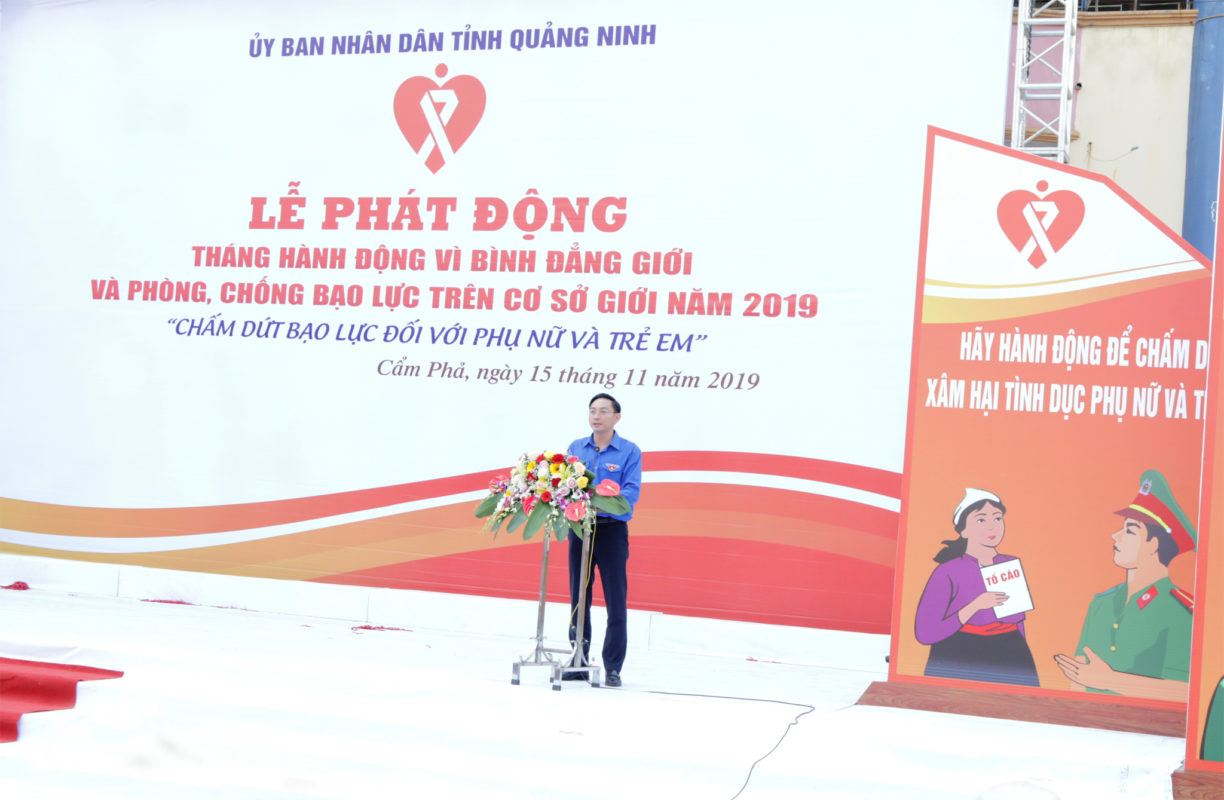 Sáng 15/11, tại TP Cẩm Phả, Sở LĐ,TB&XH phối hợp với UBND TP Cẩm Phả phát động Tháng hành động vì bình đẳng giới và phòng, chống bạo lực trên cơ sở giới năm 2019 với chủ đề: “Chấm dứt bạo lực đối với phụ nữ và trẻ em”.