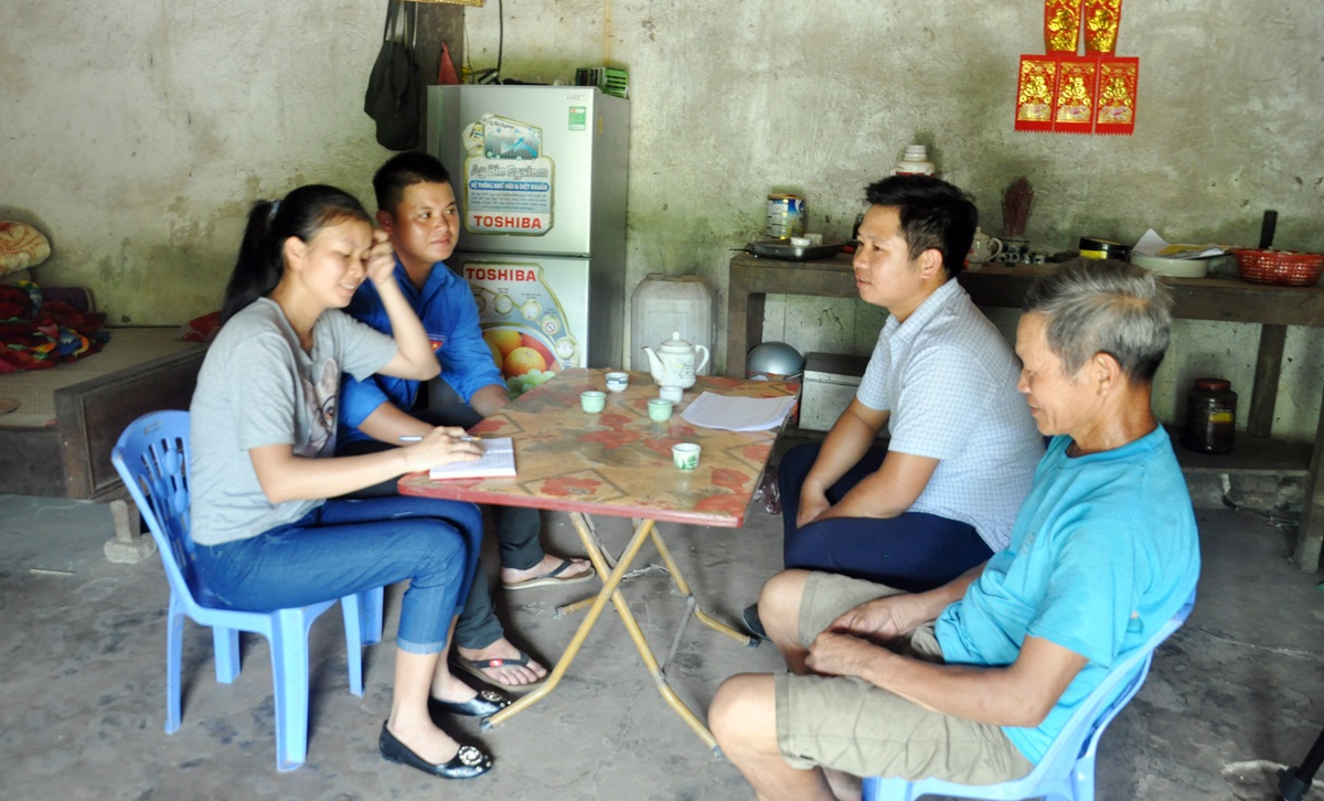 | Cán bộ Cơ quan Tổ chức – Nội vụ huyện Ba Chẽ trao đổi, chia sẻ kinh nghiệm với cán bộ thôn Làng Cổng, xã Đồn Đạc. |