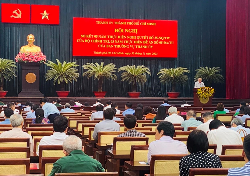 Ngày 30/11, Ban Chỉ đạo 35 Thành ủy TP Hồ Chí Minh tổ chức Hội nghị sơ kết 5 năm thực hiện Nghị quyết 35-NQ/TW ngày 22/10/2018 của Bộ Chính trị khóa XII về tăng cường bảo vệ nền tảng tư tưởng của Đảng, đấu tranh phản bác các quan điểm sai trái, thù địch trong tình hình mới (Nghị quyết 35); 3 năm thực hiện Đề án số 35-ĐA/TU ngày 19/6/2020 của Ban Thường vụ Thành ủy về tuyên truyền lan tỏa thông tin tích cực, đấu tranh phản bác các quan điểm sai trái, thù địch trên Internet, mạng xã hội tại TP Hồ Chí Minh.