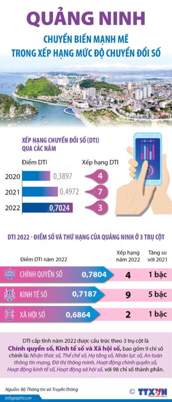Trong những năm qua, Quảng Ninh đã thực hiện công tác chuyển đổi số toàn diện với quyết tâm cao, lộ trình cụ thể, mục tiêu rõ ràng, phân công rõ người, rõ việc, rõ trách nhiệm, kiểm điểm thường xuyên, đôn đốc kịp thời và triển khai đồng bộ các nhiệm vụ chuyển đổi số của Chính phủ. Qua từng năm, công tác chuyển đổi số của Quảng Ninh đã có những chuyển biến mạnh mẽ trong xếp hạng mức độ chuyển đổi số.