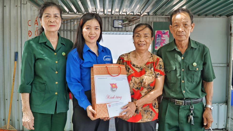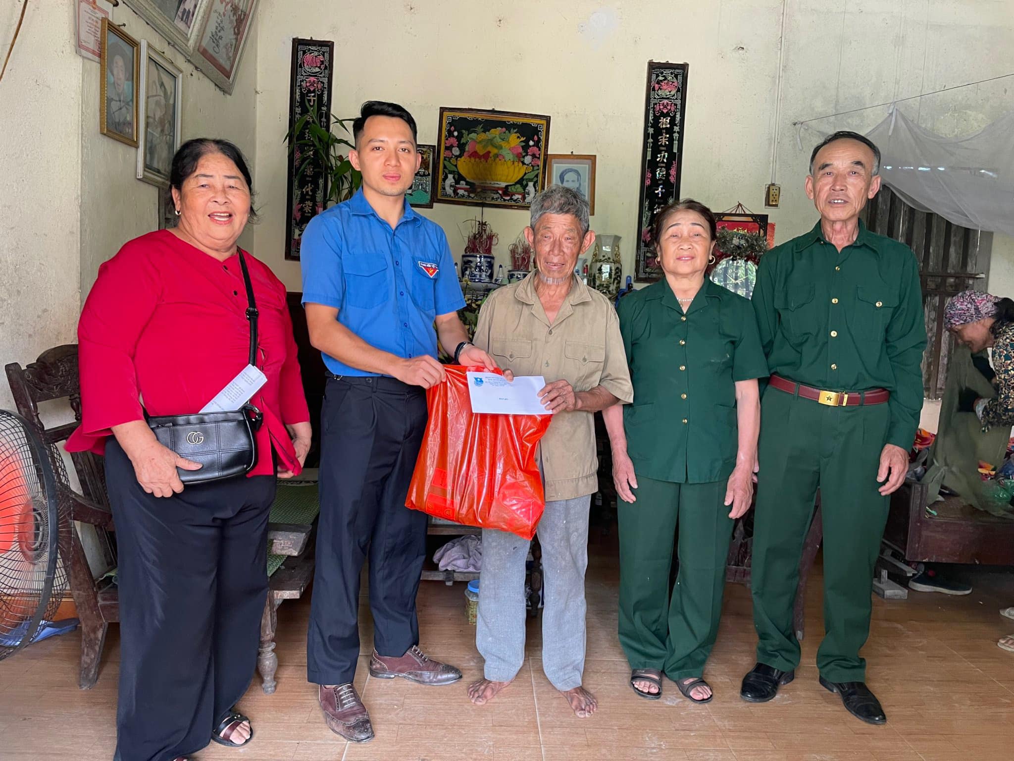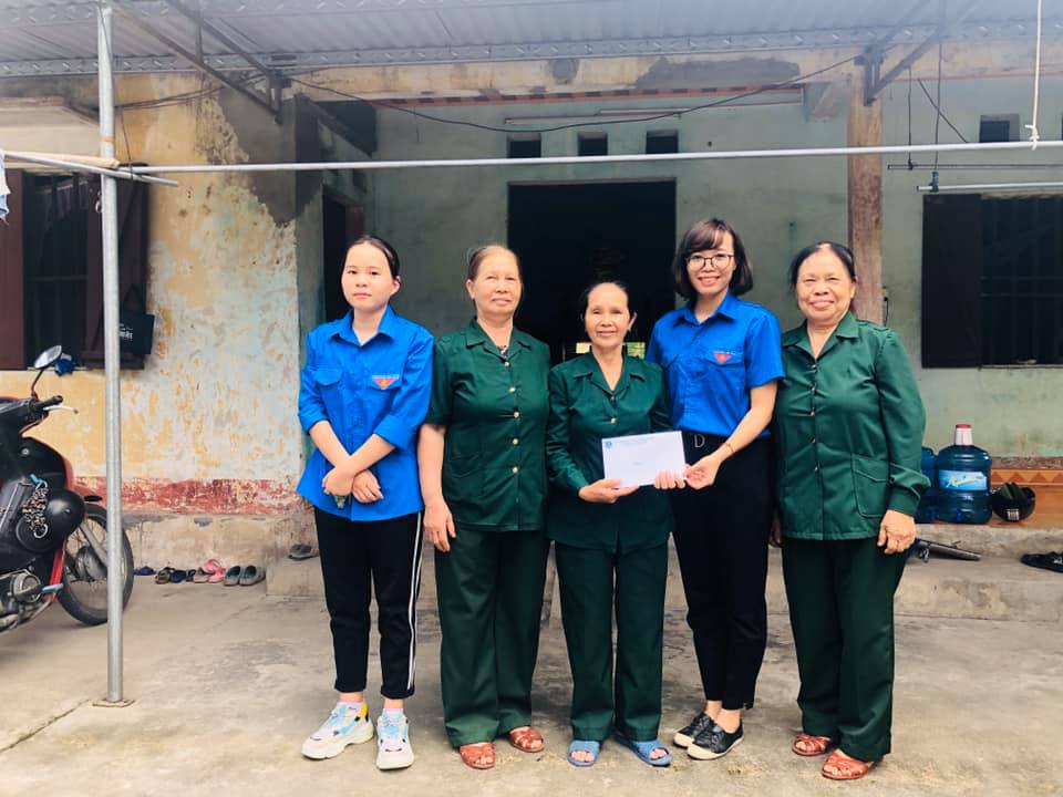 Đồng chí Nguyễn Thu Thảo – Phó Bí thư Thành đoàn Hạ Long tặng quà Hội viên Hội Cựu TNXP có hoàn cảnh khó khăn tại xã Dân Chủ