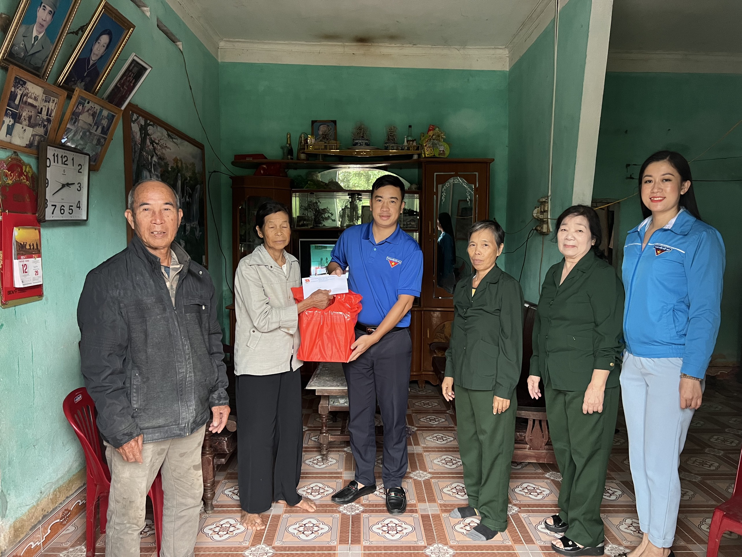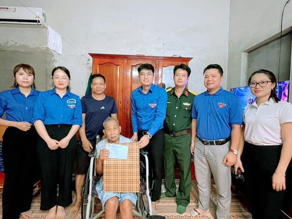 | Các đồng chí Ủy viên Ban Thường vụ Thị đoàn Đông Triều thăm, tặng quà Cựư TNXP có hoàn cảnh khó khăn là thương binh tại xã Tràng Lương |