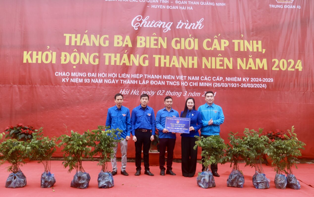 Đoàn Khối các cơ quan tỉnh Quảng Ninh và Đoàn Than Quảng Ninh trao biển tượng trưng kinh phí trồng 3.000 cây giống lim, giổi cho đoàn viên thanh niên H.Hải Hà