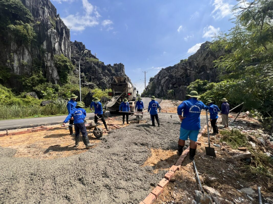 Hưởng ứng chiến dịch ý nghĩa này, Thị Đoàn Quảng Yên phối hợp với Đoàn Thanh niên – Hội sinh viên Trường Đại học Công đoàn đã đăng ký triển khai đội hình tình nguyện “Mùa hè xanh 2022” tại xã Hoàng Tân, thị xã Quảng Yên, tỉnh Quảng Ninh với mục đích nhằm chung tay góp sức cùng xã Hoàng Tân xây dựng Nông thôn mới nâng cao Trong khoảng thời gian 7 ngày (4/8/2022 – 11/8/2022). Qua những buổi làm việc Đội hình tình nguyện đã thực hiện các công trình, mô hình, phần việc tại địa phương như: Tham gia trồng 300 cây keo tại tuyến đường Thanh niên tự quản của xã Hoàng Tân và trồng 50 cây sấu; Triển khai dọn dẹp vệ sinh đường trục chính các tuyến đường thuộc 5 thôn trong xã Hoàng Tân với tổng chiều dài 15km, tham gia phân loại rác thải, phối hợp vận chuyển rác thải ra nơi tập kết được 30 tấn; Hỗ trợ đổ 50m khối bê tông tại sân chơi khu vực Đèo Mang, thôn 5, xã Hoàng Tân với chiều dài 90m nhằm giúp các em thiếu nhi có một mùa hè vui tươi bổ ích; tổ chức các buổi sinh hoạt hè, giao lưu với các em thanh thiếu nhi tại các thôn trên địa bàn xã Hoàng Tân. Bên cạnh đó, Đội hình tình nguyện còn tham gia các hoạt động ý nghĩa khác như: quét dọn, vệ sinh, hỗ trợ chuẩn bị tổ chức lễ Vu lan tại Chùa Hoàng Tân; hỗ trợ công tác tiêm chủng vắc xin phòng, chống dịch COVID-19,…