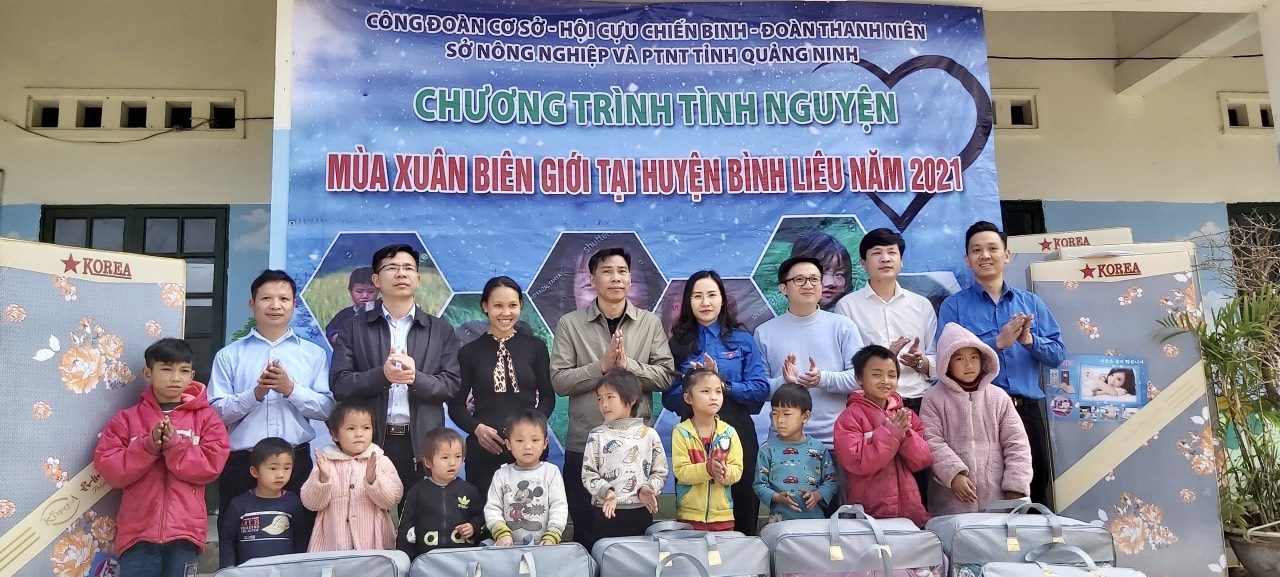 Đoàn Sở Nông nghiệp và phát triển nông thôn phối hợp với Công đoàn, Hội Cựu chiến binh tổ chức chương trình “Tuổi trẻ với mùa xuân biên giới” vận động, ủng hộ nguồn lực góp phần chăm lo đời sống vật chất, tinh thần cho thiếu nhi, người dân vùng cao tại xã Đồng Văn, huyện Bình Liêu, trao tặng 06 chiếc đệm, 20 chiếc chăn, 10 gói quà tết cho 01 điểm trường mầm non và 10 hộ gia đình nghèo; tặng 700 cây Dổi giống cho các hộ dân trồng cây lâm nghiệp. Tổng kinh phí hỗ trợ khoảng 45 triệu đồng.