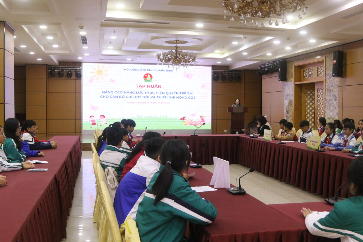Tại chương trình, đồng chí Lê Thị Hồng Thái – Trưởng phòng Trẻ em và Bình đẳng giới, Sở Lao động – Thương binh và Xã hội truyền giảng các nội dung về quyền trẻ em theo pháp luật Việt Nam và Công ước Quốc tế; cách tiếp cận thực hiện các quyền của trẻ em theo Thông tư 27/2022/TT-BLĐTBXH ngày 29/12/2022 của Bộ Lao động – Thương binh và Xã hội về hướng dẫn sự tham gia của trẻ em vào hoạt động ngoài gia đình, ngoài cơ sở giáo dục; kỹ năng tự bảo vệ trước các nguy cơ bị xâm hại, bạo lực cho cán bộ chỉ huy Đội và nhóm trẻ em nòng cốt.