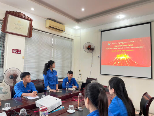 Tại buổi sinh hoạt, các bạn đoàn viên thanh niên đã xem phim tư liệu về cuộc đời và sự nghiệp của Bác, sôi nổi thảo luận và giới thiệu về những cuốn sách hay, những câu chuyện đẹp về Bác. Trong chương trình sinh hoạt, tuyên truyền đến đoàn viên, thanh niên về hoàn cảnh ra đời, nội dung cốt lõi và giá trị lý luận, thực tiễn sâu sắc trong Di chúc của Chủ tịch Hồ Chí Minh; khẳng định giá trị trường tồn của Di chúc, là văn kiện lịch sử cực kỳ quan trọng, là kết tinh tư tưởng, văn hóa, trí tuệ, đạo đức và tâm hồn cao đẹp của một bậc vĩ nhân, Người đã làm rạng rỡ dân tộc ta, Nhân dân ta và non sông đất nước ta. Đồng thời, các bạn đoàn viên thanh niên đã thảo luận và tham gia trả lời các câu hỏi liên quan đến sự nghiệp, cuộc đời và di chúc của Bác.