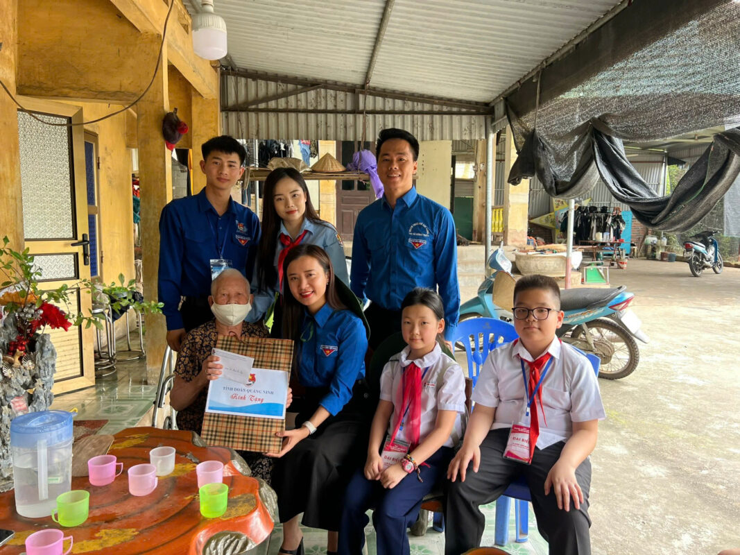 Đồng chí Nguyễn Phương Thảo – Phó Bí thư Tỉnh đoàn cùng các em thiếu nhi tiêu biểu thăm tặng quà cựu TNXP trên địa bàn Thị xã Đông Triều.
