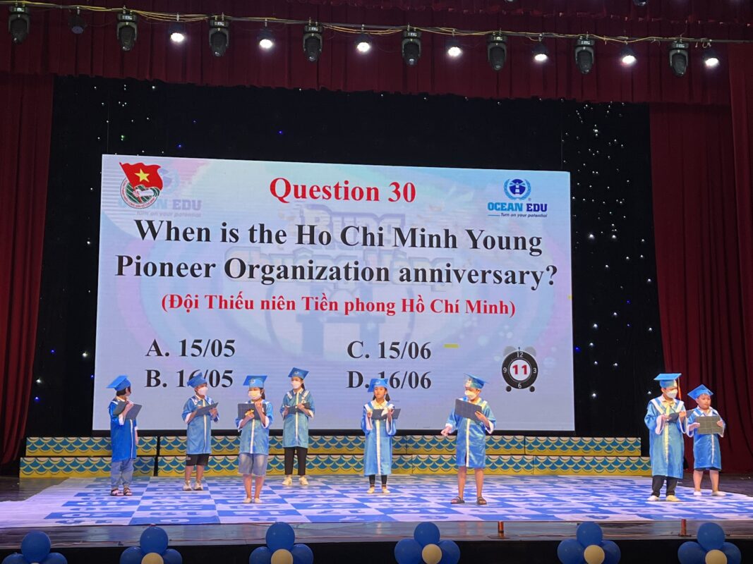 Thực hiện Công văn số 2528-CV/TĐTN-TTNTH ngày 10/6/2022 của Ban Thường vụ Tỉnh đoàn về việc “tổ chức Hội thi Rung chuông vàng bằng Tiếng Anh cho thanh thiếu nhi trên địa bàn tỉnh Quảng Ninh nhân dịp hè 2022”, Ban Thường vụ các huyện, thị, thành Đoàn đồng loạt tổ chức Hội thi “Rung chuông vàng” cho 02 khối đối tượng là học sinh tiểu học và học sinh trung học cơ sở thu hút 3.475 lượt học sinh tham gia. Trong đó, Ban Thường vụ Tỉnh đoàn chỉ đạo điểm 04 đơn vị: Hạ Long, Cẩm Phả, Uông Bí, Quảng Nih tổ chức Hội thi điểm cấp tỉnh.