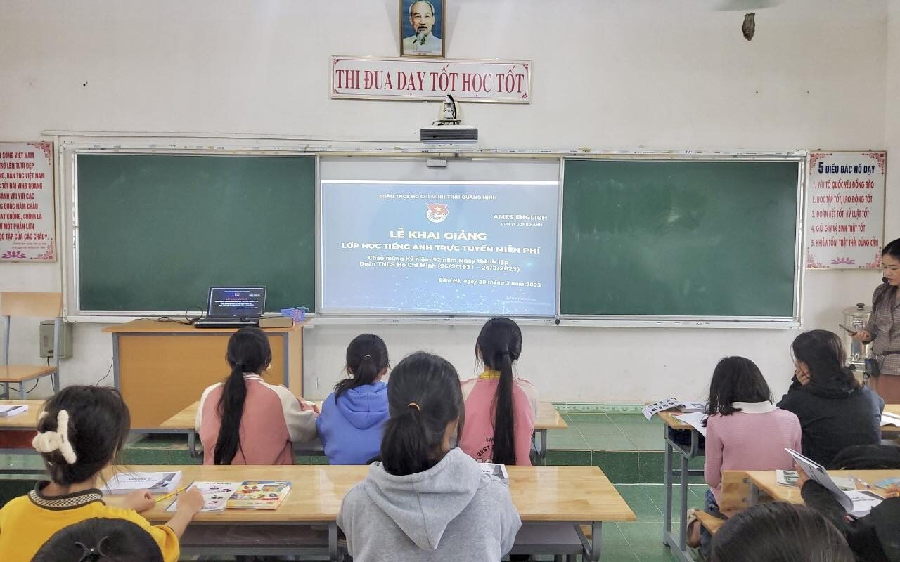 Từ ngày 20/3/2023, Ban Thường vụ Tỉnh đoàn phối hợp với Hệ thống Anh ngữ Ames tổ chức khai giảng lớp tiếng Anh trực tuyến miễn phí cho học sinh vùng sâu vùng xa, học sinh có hoàn cảnh khó khăn trên địa bàn huyện Đầm Hà, tỉnh Quảng Ninh.