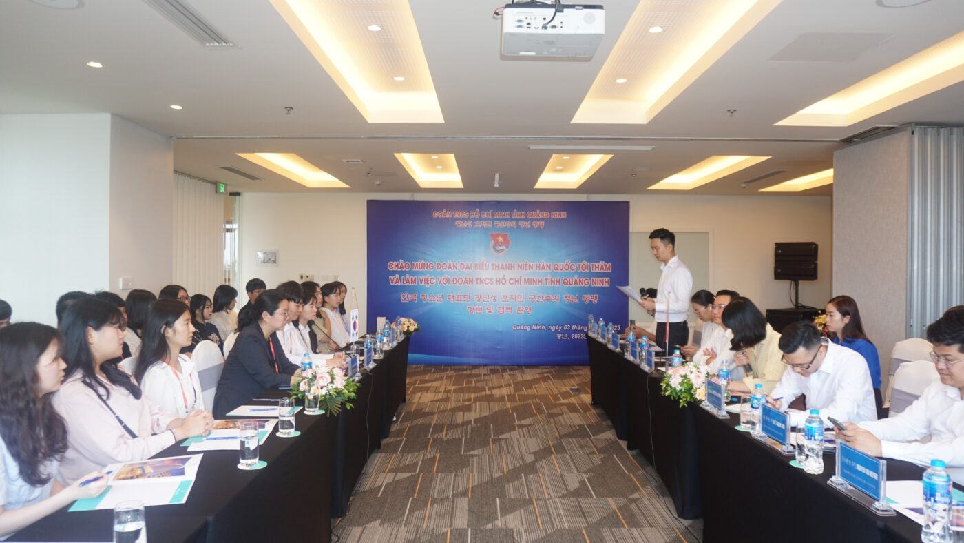 Đại diện Tỉnh đoàn Quảng Ninh, đồng chí Hoàng Văn Hải, Bí thư Tỉnh đoàn đã giới thiệu với Đoàn đại biểu thanh niên Hàn Quốc về tiềm năng, thế mạnh, tài nguyên thiên nhiên, văn hóa, lịch sử, du lịch và sự phát triển của Quảng Ninh trong thời gian qua, sự quan tâm của cả hệ thống chính trị với tổ chức Đoàn, phong trào thanh niên và đóng góp của thế hệ trẻ Quảng Ninh vào công cuộc xây dựng tỉnh Quảng Ninh ngày càng giàu, đẹp, phát triển.