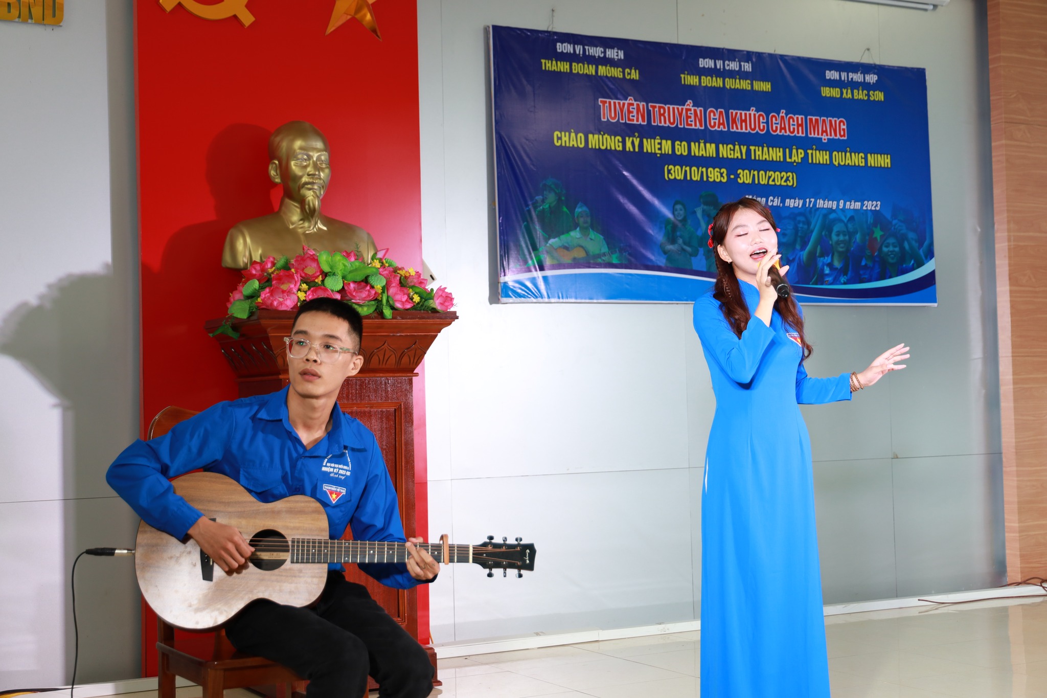 Ngày 17/9, Tỉnh đoàn Quảng Ninh chủ trì tổ chức, chỉ đạo Thành đoàn Móng Cái, phối hợp với UBND Xã Bắc Sơn thực hiện chương trình tuyên truyền ca khúc Cách mạng chào mừng kỷ niệm 60 năm ngày thành lập Tỉnh Quảng Ninh (30/10/1963 – 30/10/2023)”. Tới dự có đồng chí Nguyễn Tuấn Thắng UV BTV, Trưởng ban Tuyên giáo Tỉnh đoàn Quảng Ninh; đồng chí Nguyễn Thế Vinh, phó Bí thư phụ trách Thành Đoàn Móng cái; lãnh đạo Đảng ủy, HĐND, UBND xã Bắc Sơn, Đồn Biên phòng Bắc Sơn.