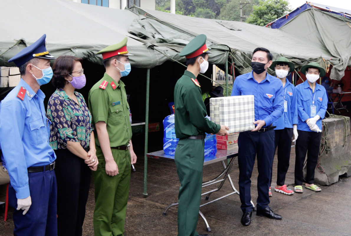 Buổi chiều cùng ngày, đoàn công tác thứ 2 của Tỉnh đoàn Quảng Ninh do đồng chí Phạm Hồng Thái làm trưởng đoàn cũng đã đến thăm tặng quà động viên các đội thanh niên xung kích đang cùng lực lượng chức năng trực, làm nhiệm vụ tại một số chốt kiểm soát dịch Covid -19 trên địa bàn TP. Hạ Long.