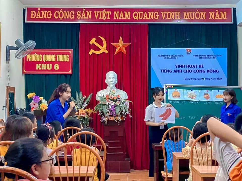 Tính đến ngày 25/8, toàn tỉnh đã tổ chức được 56 điểm dạy ngoại ngữ miễn phí cho thanh thiếu nhi dịp Hè 2022 (hoàn thành 56/40 chỉ tiêu điểm học ngoại ngữ, tin học miễn phí đề ra, đạt 145%). Để triển khai hoàn thành đạt và vượt chỉ tiêu của Chiến dịch Thanh niên tình nguyện Hè 2022, Ban Thường vụ Tỉnh đoàn đã triển khai nhiều giải pháp sáng tạo, đồng bộ và hiệu quả. BTV Tỉnh đoàn phối hợp với Cung Văn hóa thiếu nhi Quảng Ninh, Trung tâm Ngoại ngữ Ames Quảng Ninh tổ chức 2 lớp học tiếng Anh miễn phí dành cho 40 thanh, thiếu nhi từ 6-18 tuổi tại Cung Văn hóa thiếu nhi Quảng Ninh do 100% giáo viên nước ngoài tham gia giảng dạy. Tại các đơn vị địa phương như Cẩm Phả, Vân Đồn, Uông Bí, Quảng Yên, Đầm Hà, Móng Cái, Đông Triều cũng đã tổ chức được các điểm dạy ngoại ngữ dành cho thanh, thiếu nhi kết hợp cùng chương trình sinh hoạt hè với số lượng học viên trung bình từ 20-25 em/lớp.