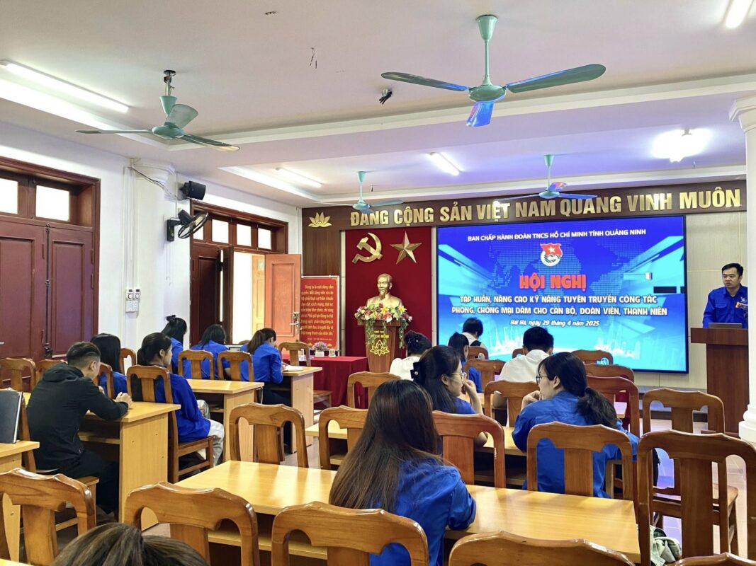 Thực hiện Kế hoạch số 261-KH/TĐTN-PT ngày 16/4/2025 của Ban Thường vụ Tỉnh đoàn về triển khai công tác phòng, chống tội phạm, tệ nạn xã hội năm 2025, Tỉnh đoàn Quảng Ninh đã tổ chức 04 hội nghị tập huấn chuyên đề nâng cao kỹ năng tuyên truyền công tác phòng, chống mại dâm dành cho cán bộ, đoàn viên, thanh niên tại các địa phương: