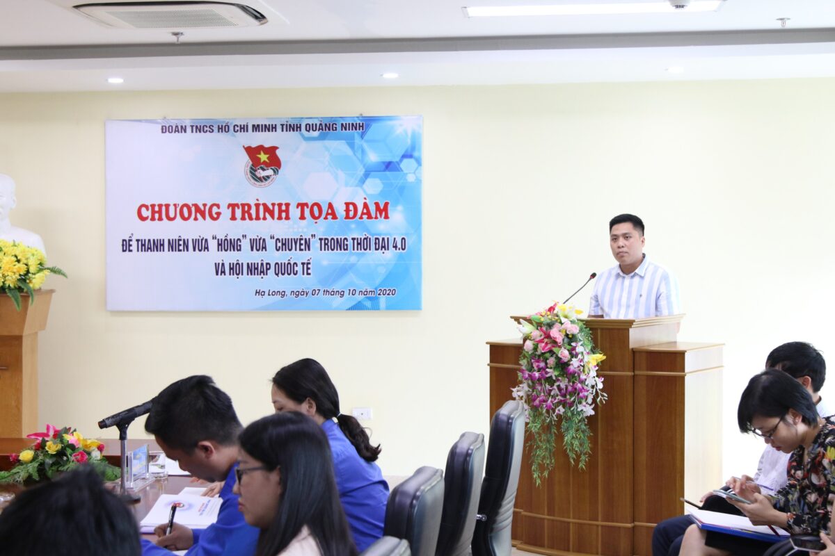 Thực hiện Kế hoạch số 2493 KH/BCĐ ngày 24/09/2020 của Ban Chỉ đạo xây dựng xã hội học tập tỉnh Quảng Ninh về việc “Phối hợp tổ chức các hoạt động trọng tâm cấp tỉnh trong tuần lễ hưởng ứng học tập suốt đời năm 2020”, chiều ngày 07/10 Ban Thường vụ Tỉnh đoàn đã tổ chức chương trình Tọa đàm với chủ đề “Để thanh niên vừa “hồng” vừa “chuyên” trong thời đại 4.0 và hội nhập quốc tế”.