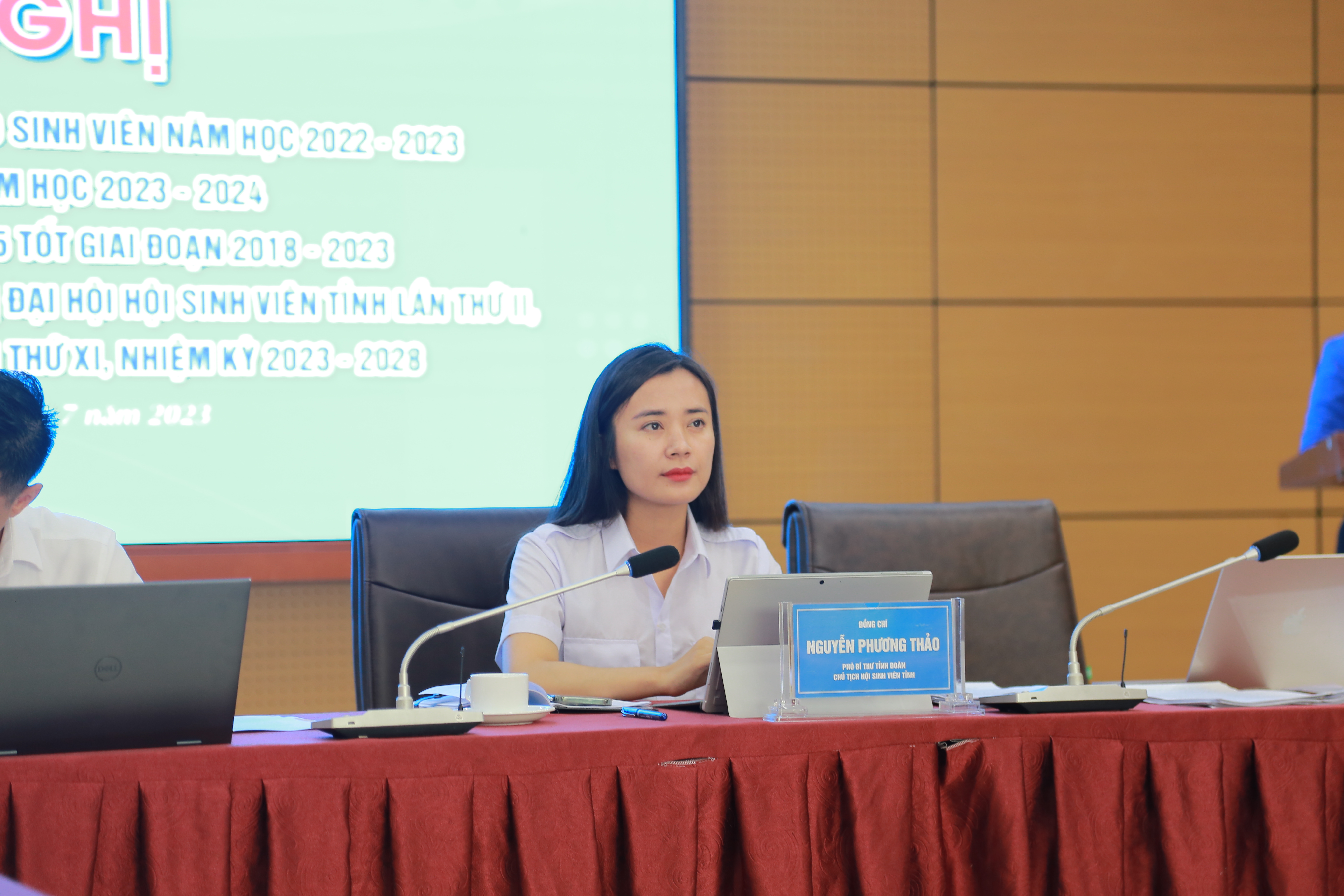 Đồng chí Nguyễn Phương Thảo, Phó Bí thư Tỉnh đoàn , Chủ tịch Hội sinh viên tỉnh chủ trì Hội nghị