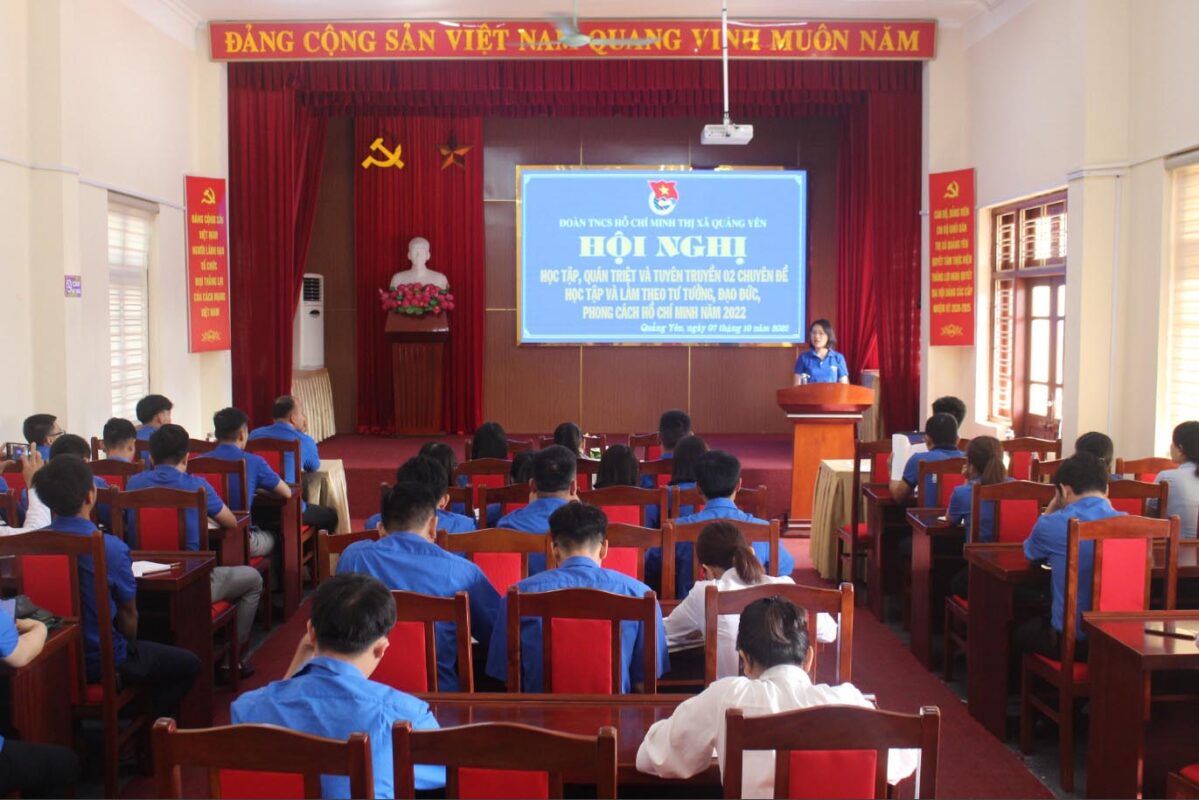 Trong 2 ngày 5- 6/7, Đoàn TN cục Hải Quan tỉnh tổ chức sinh hoạt học tập 02 chuyên đề học tập và làm theo tư tưởng, đạo đức, phong cách Hồ Chí Minh năm 2022 với chủ đề:”Nêu gương đạo đức cách mạng, quét sạch chủ nghĩa cá nhân” và “Khát vọng cống hiến, xây dựng đất nước”.Ngày 06/9/2022, ĐTN Công an Tỉnh Tổ chức sinh hoạt chuyên đề “Học tập và làm theo tư tưởng, đạo đức, phong cách Hồ Chí Minh về ý chí tự lực, tự cường và khát vọng phát triển đất nước phồn vinh, hạnh phúc”; bài phát biểu và bài viết “Một số vấn đề lý luận và thực tiễn về chủ nghĩa xã hội và con đường đi lên chủ nghĩa xã hội ở Việt Nam” của Tổng Bí thư Nguyễn Phú Trọng.Ngày 10/9/2022, Thị đoàn Đông Triều tổ chức hội nghị quán triệt, tuyên truyền 02 nội dung chuyên đề học tập và làm theo tư tưởng, đạo đức, phong cách Hồ Chí Minh năm 2022.